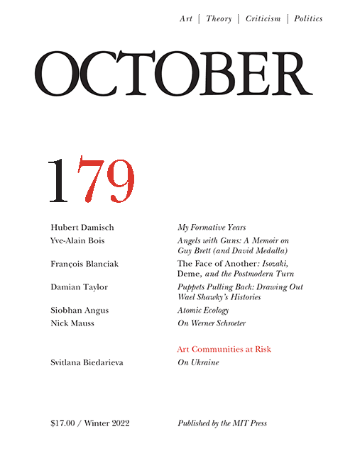 斯维特拉娜-别达里耶娃(Svitlana Biedarieva)是一位艺术史学家、艺术家和策展人。2022年,老牌艺术期刊《October》在179期刊登了别达里耶娃一篇名为《濒危艺术社区——关于乌克兰》(Art Communities at Risk:On Ukraine)的文章,文章集中关注了乌克兰艺术家和艺术表现形式在持续的军事冲突中面临的敌意和压迫,以及他们的抵抗策略。