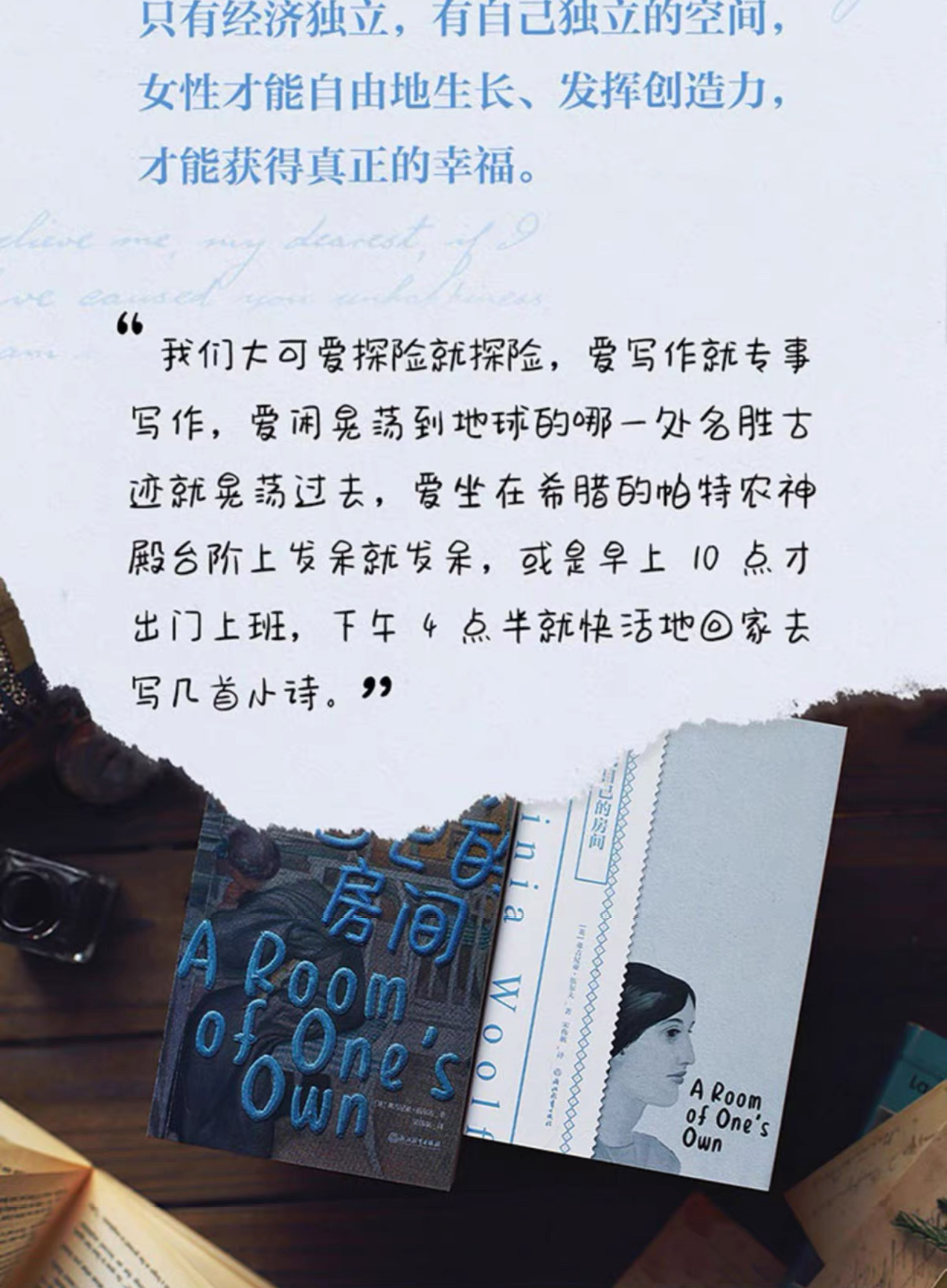 这正是英国女作家维吉尼亚.伍尔夫在他的著作《一间自己的房间》所向往的女性的样子。