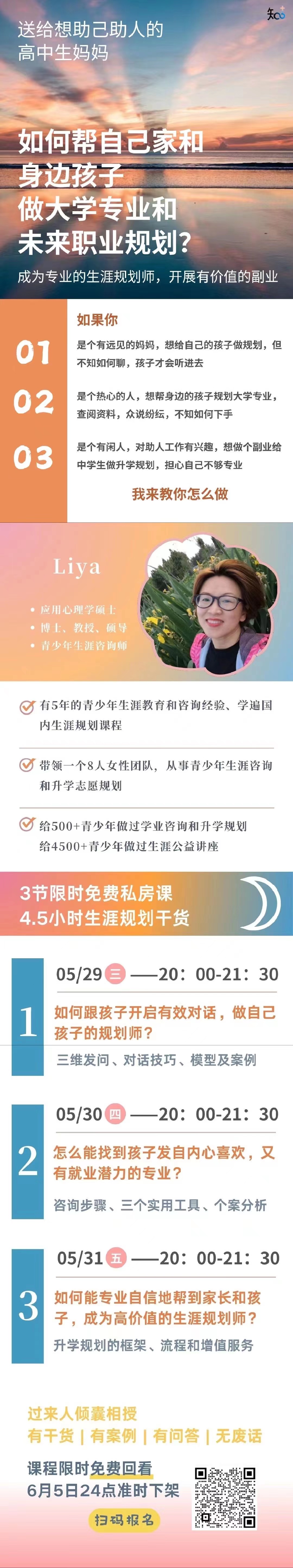 18:18 想帮助高中生家长成为青少年生涯规划师,开展有价值的副业,助己助人