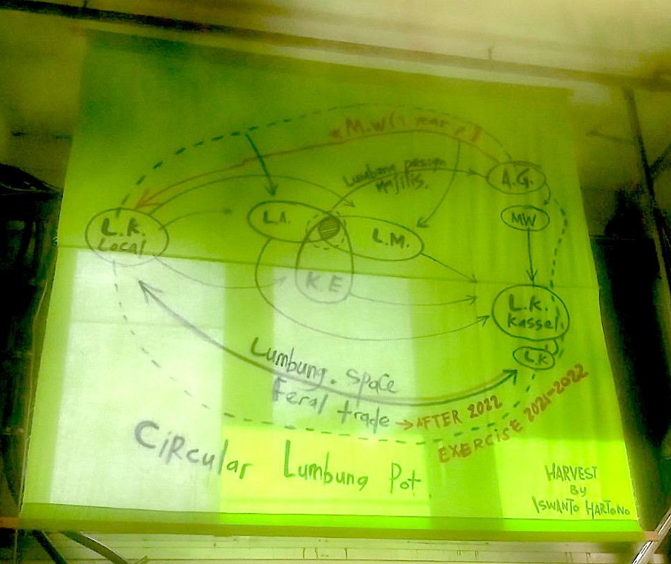 “lumbung”直译为 "米仓",指的是印度尼西亚农村地区的一种公共建筑,在这里,社区的收成按照共同确定的标准进行收集、储存和分配,作为未来的集合资源。作为一种具体实践,lumbung 是第十五届文献展的出发点:集体主义、资源建设和公平分配的原则是策展工作的关键,并影响着整个过程--第十五届文献展的结构、自我形象和外观。