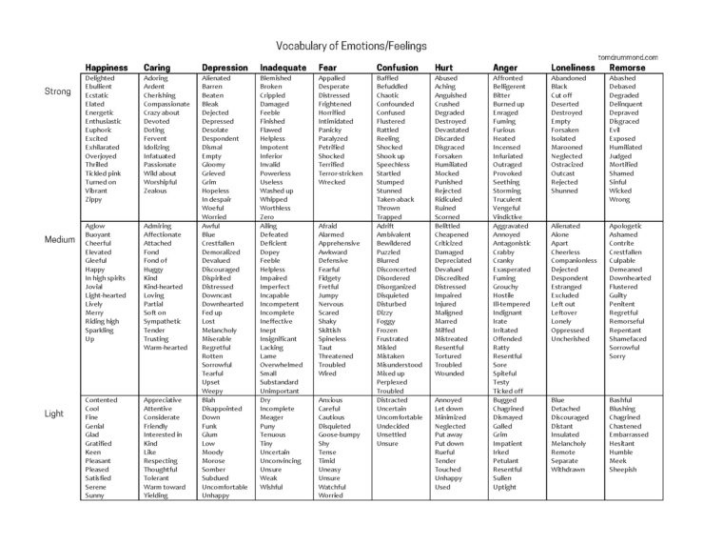 1:05 为什么情绪是我的人生优先级3:25 没有情绪是“不好的”7:50 提升“情绪词汇量”9:00练习给情绪命名,正确的情绪陈述11:42 主要情绪与次要情绪16:23 人如何自己创造痛苦18:47 情绪“麻木”时怎样找回22:56 我们的应对机制与常见种类26:24 为什么应对机制会失效,找不到应对方法怎么办29:02 情绪障碍的成因与解决方案31:33 意愿的力量情绪轮 Emotion wheel情绪词汇表应对技巧