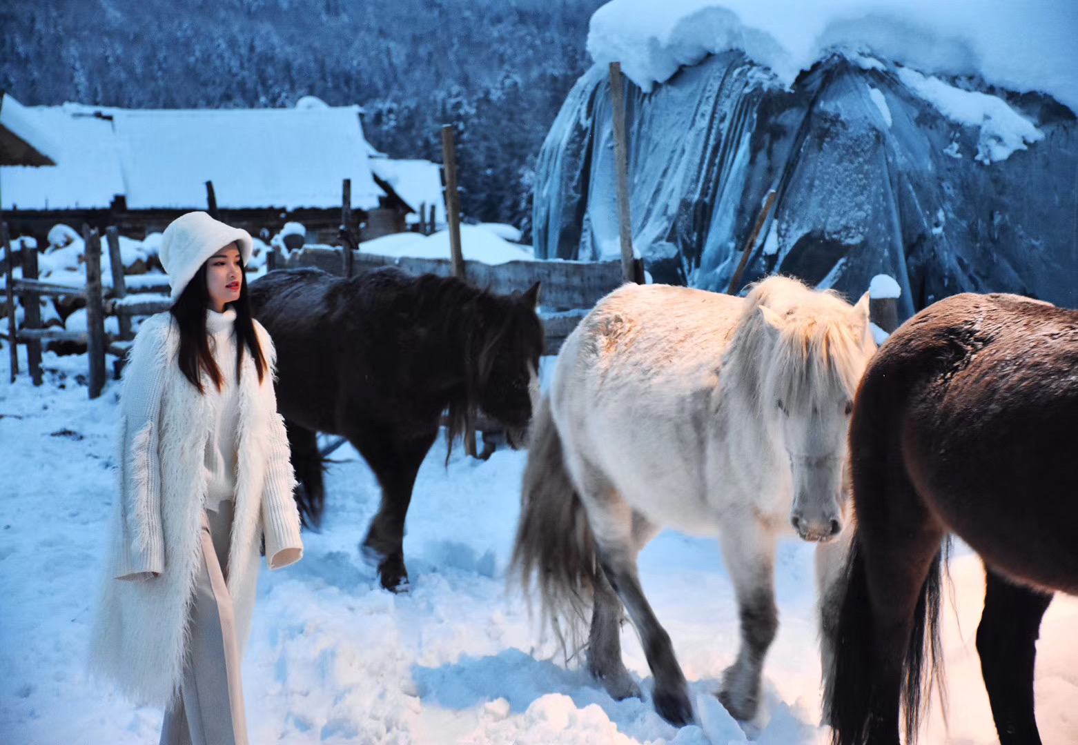 在赛里木湖冰面躺平、和马群在禾木村散步、独自行走在雪后的森林、探秘神奇的喀纳斯湖…….
