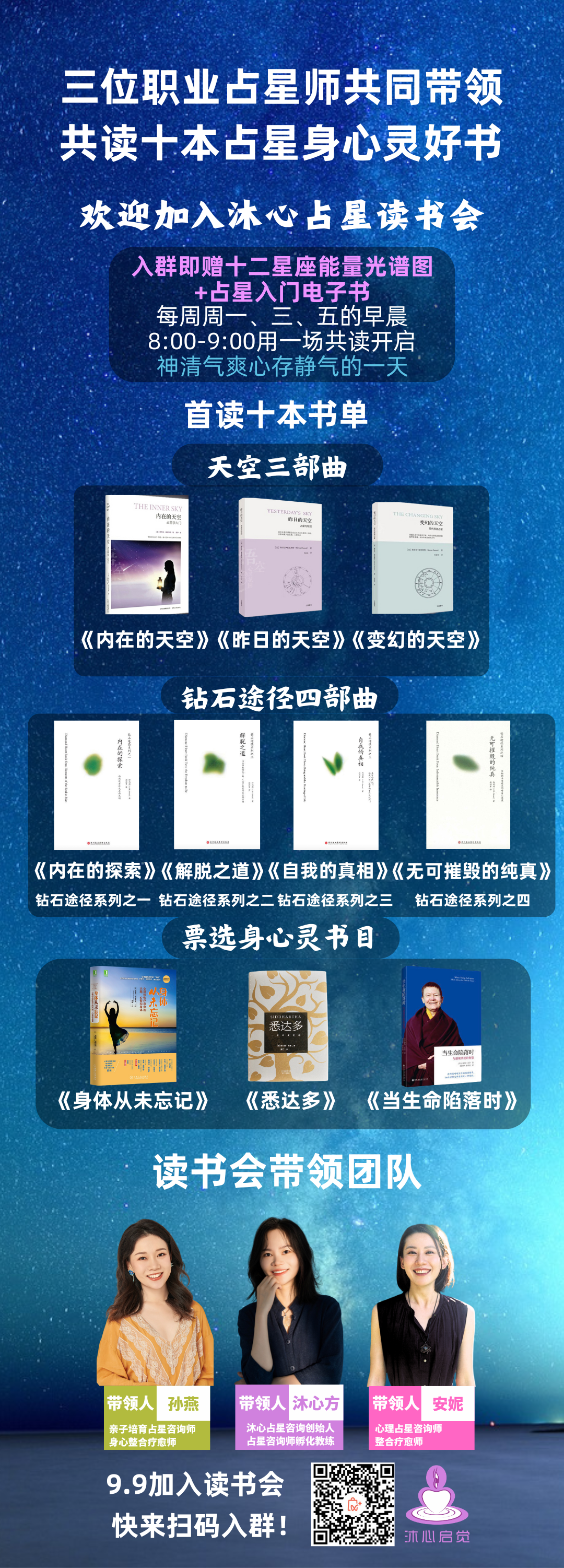 每周一、三、五早晨8点,三位职业占星师陪你共读10本身心灵好书。