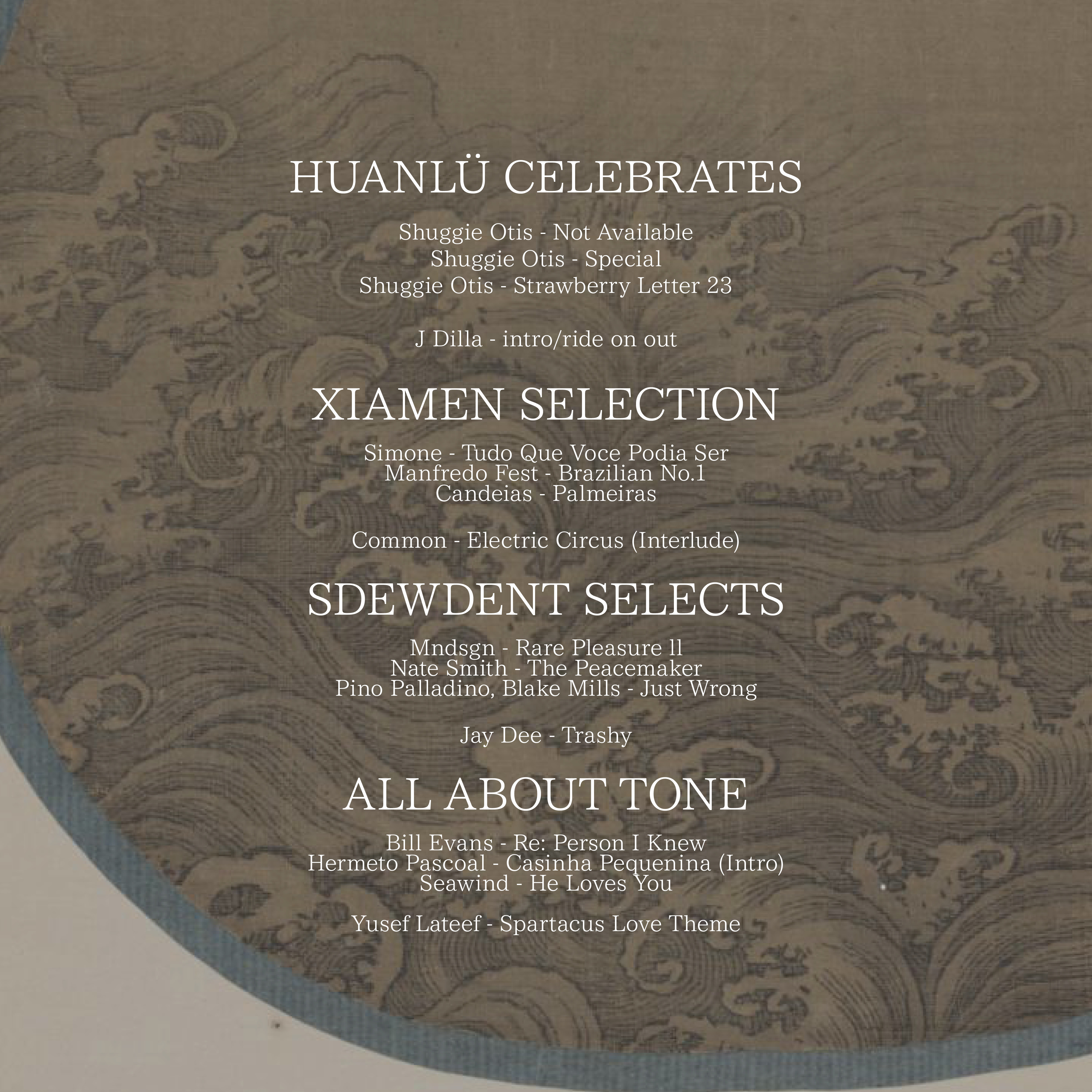 Our intention is to “SHARE 分享” music and return to the most simple process without too much description. We hope the listeners feel the music for what it is and for the music to speak for itself. The show is compiled of four themes: HUANLÜ CELEBRATES, XIAMEN SELECTION, SDEWDENT SELECTS, ALL ABOUT TONE.