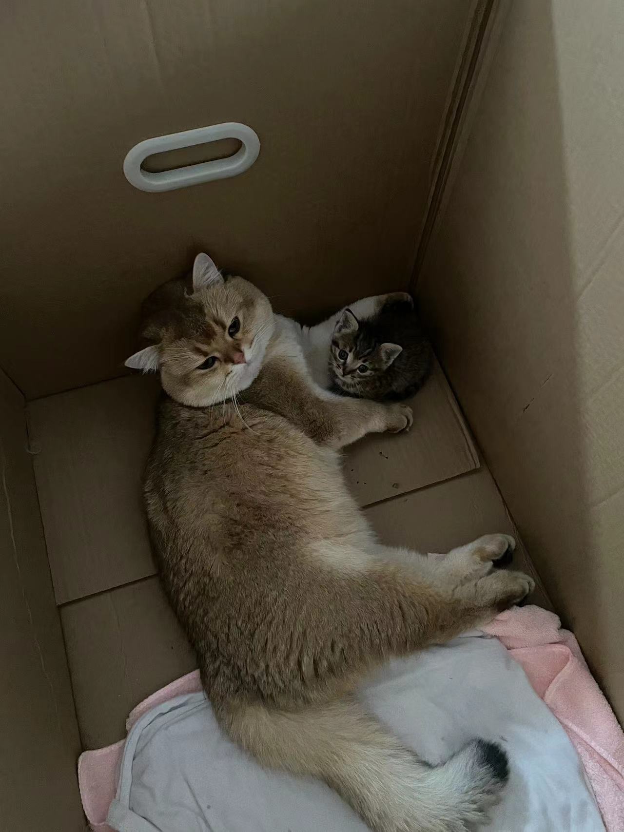 回家后的抱抱被“原住民”金渐层自动认领❤