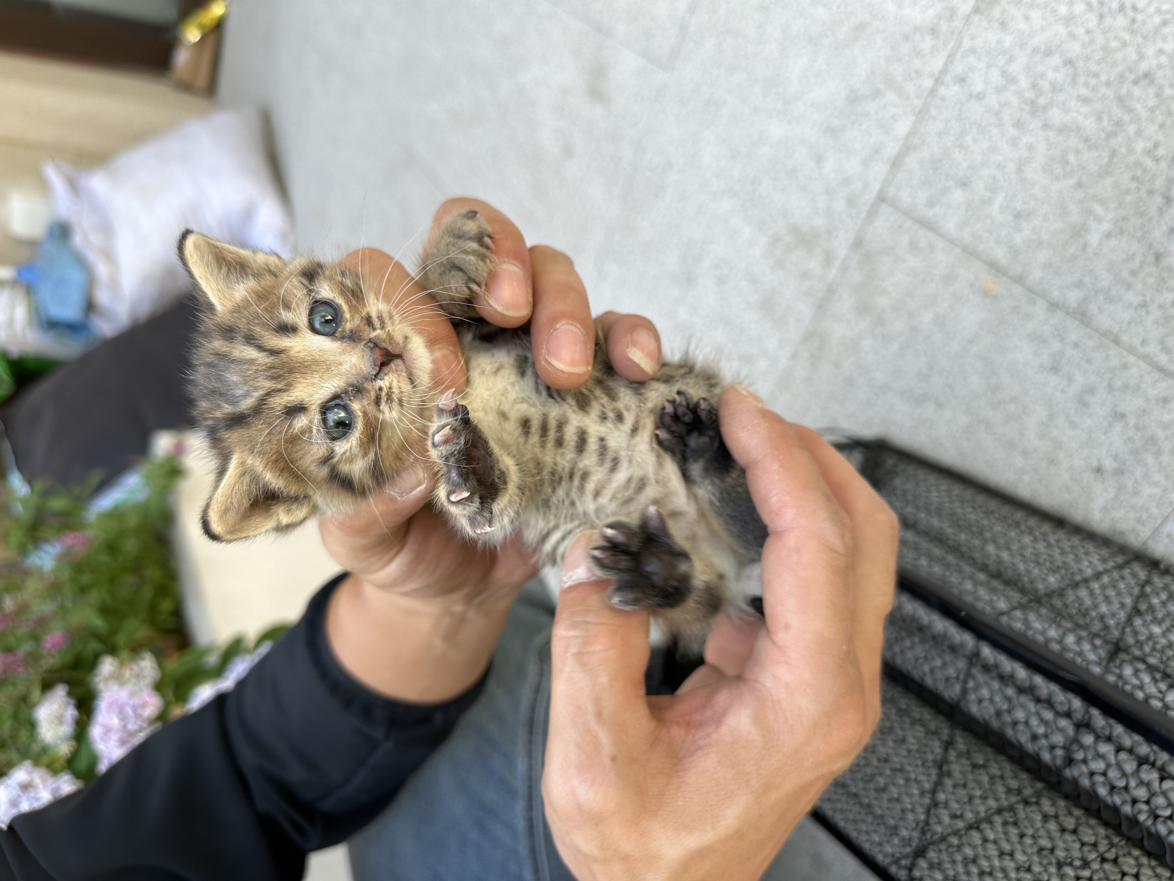 刚从墙里救出来的小狸花猫,主人给他取名“李北豹”(小名“抱抱”)