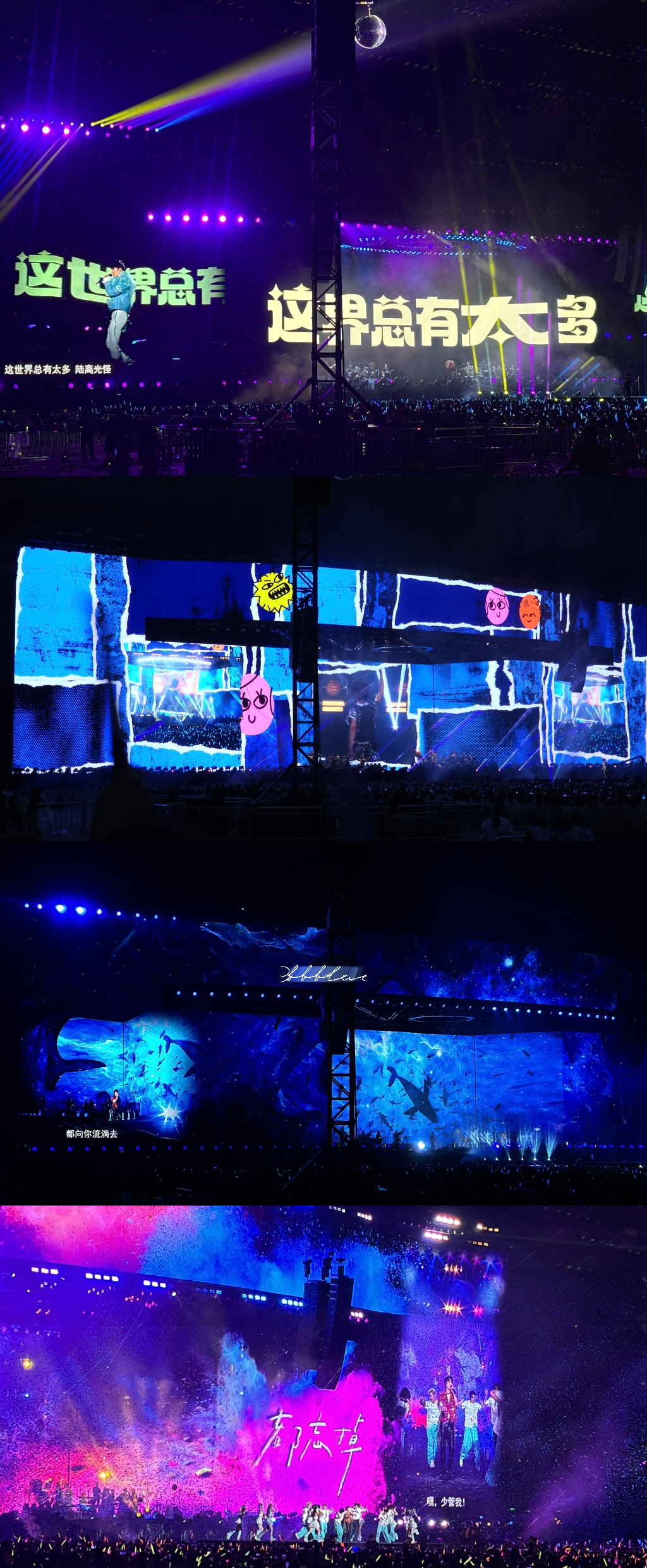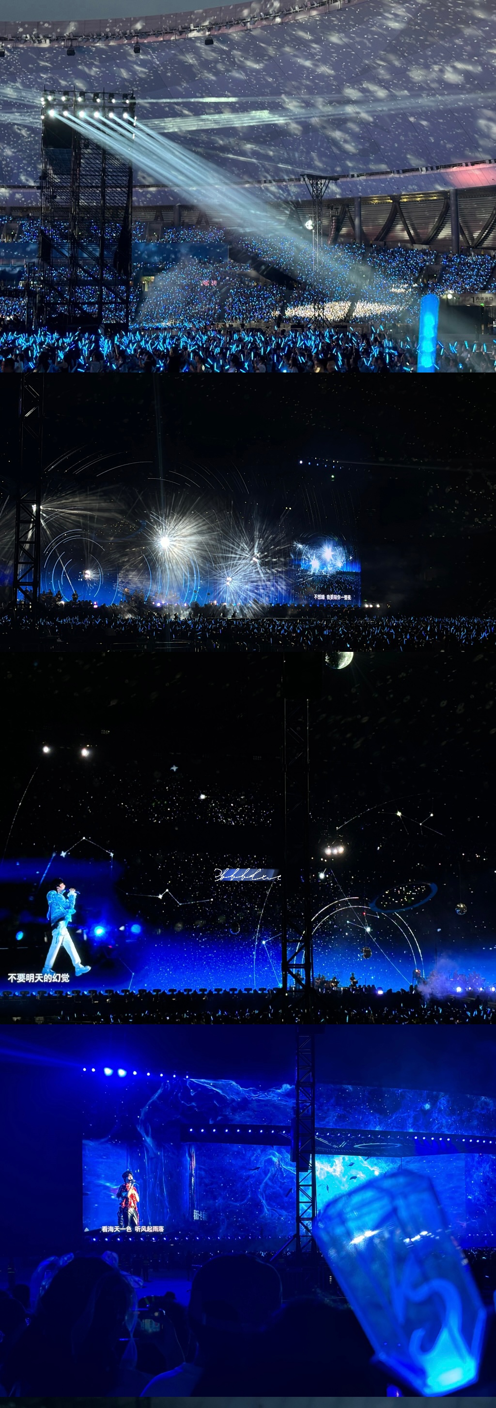 51:45 最感动的两首歌:《不想睡》-“四年过去了我也终于成为了这片应援蓝海的一部分”;《我以渺小爱你》-“一张张放映的粉丝照,居然也有了我的身影”。
