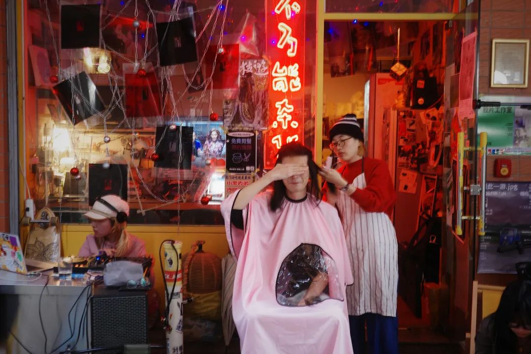 33在门口打碟,kiko在给阿青剪头发
