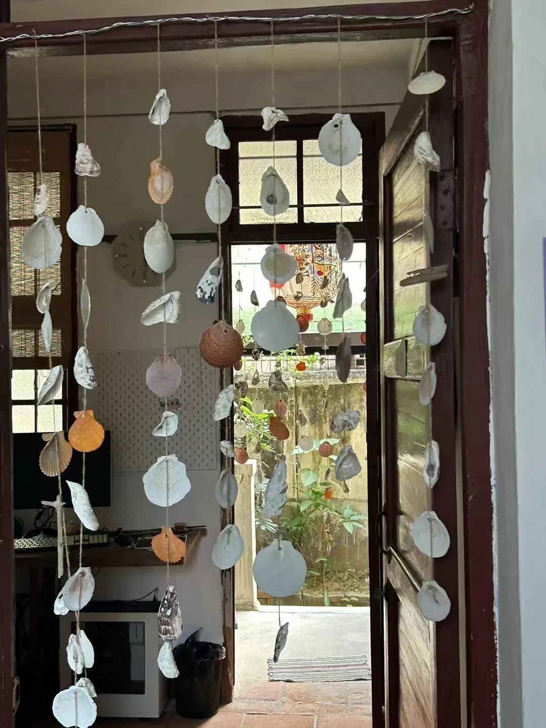 大爱捡回的贝壳串成的门帘