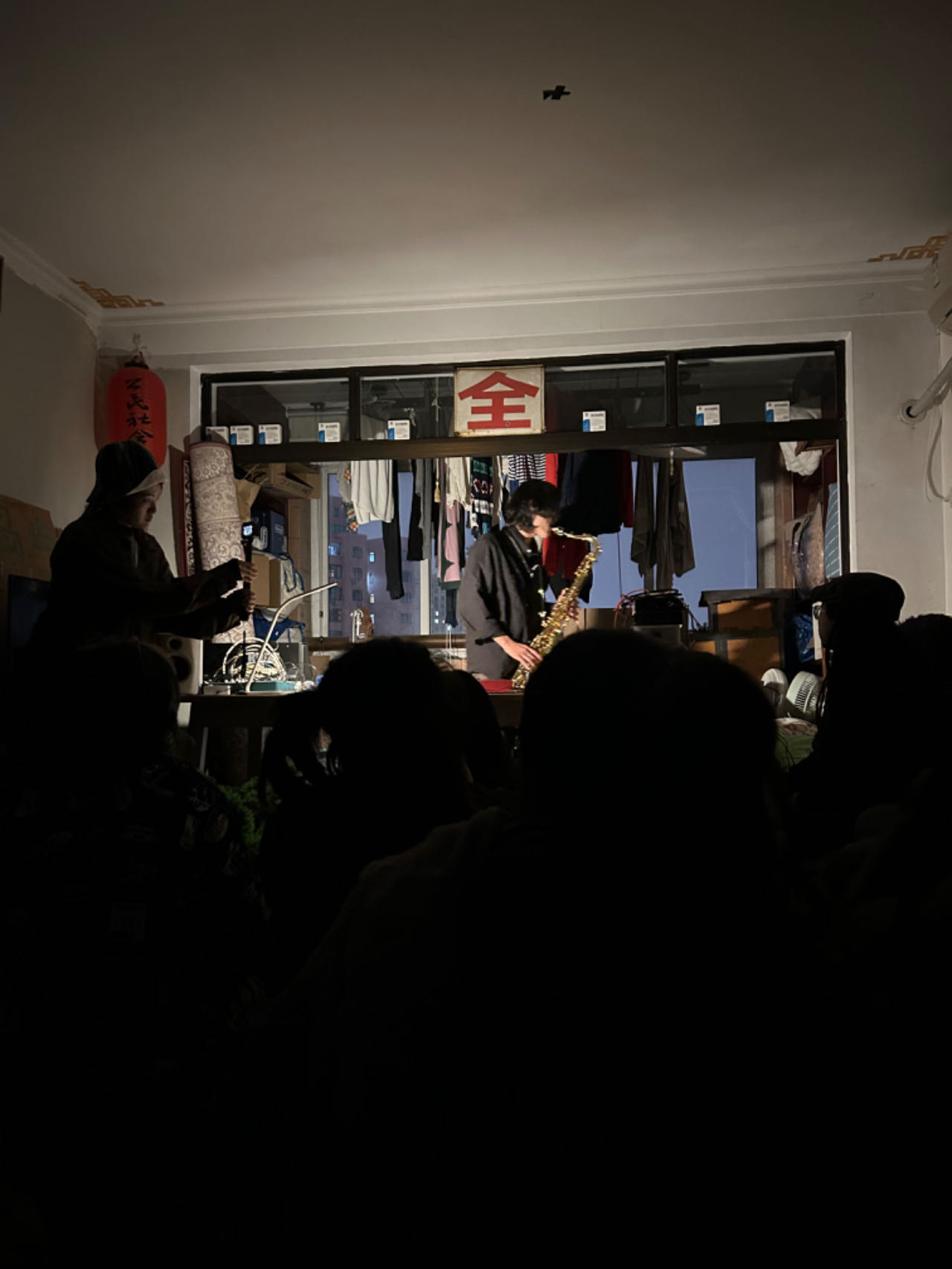 门口贴满厦门各种艺文活动的海报,可以坐着发呆、抽烟、聊天、打碟,附近的朋友们会用这里扎手针、穿孔、剪头发。二楼是大鹏的床,用一道百叶帘隔开,帘上贴着的对联是「儿孙满堂,与我无关」,横批是「吴家大院」。24小时开放,无人看店。用大鹏的话来说就是「这里没干嘛,你想干嘛就干嘛」。