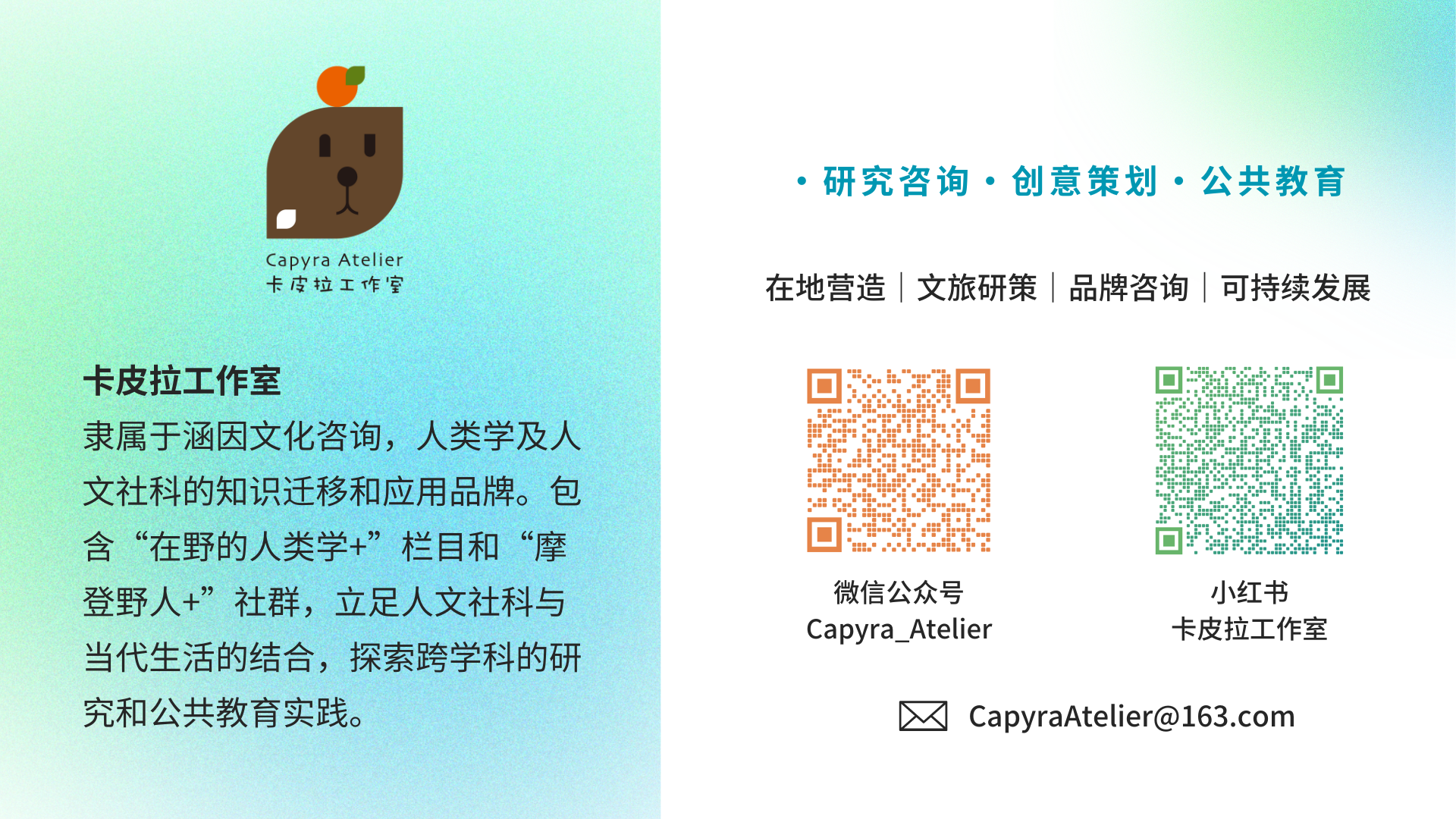 如果你想了解更多关于我的内容和活动,或者想加入我们的野人团体,来共创内容,请关注我的公众号“卡皮拉Capyra”或小红书“卡皮拉工作室”,给我留言。