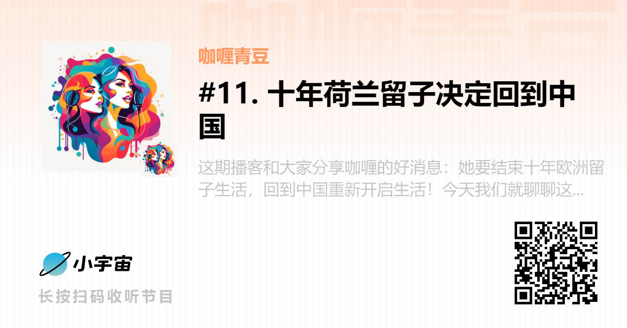这期节目是几个月前一期播客的续集 ep.11 十年荷兰留子决定回到中国 (点击链接或者扫描下面的二维码可以收听哦~)