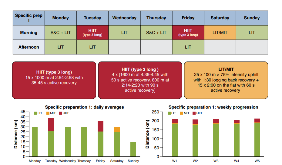 HIIT(High-Intensity Interval Training)是指一种高强度间歇训练方式,它特别适合于不同水平的跑者,包括精英选手、业余选手、业余精英选手甚至是普通人群。尽管如此,每个人的HIIT训练量、训练类型以及强度都有所不同,并且并不一定非要达到极限强度才能提升最大摄氧量。在实施HIIT训练时,不应仅看具体的训练距离、组数和休息时间,更重要的是关注其中的训练负荷分配情况。例如,一次800米亚瑟式间歇训练和一次1600米间歇训练虽然在距离上有较大差异,但如果将亚瑟式的高强度应用到1600米上,可能会导致大多数人在训练后无法继续。正确的做法是结合个体实际能力和复合安排,找到合适的训练强度和持续时间,同时考虑到天气条件等因素的影响,合理调整训练计划。