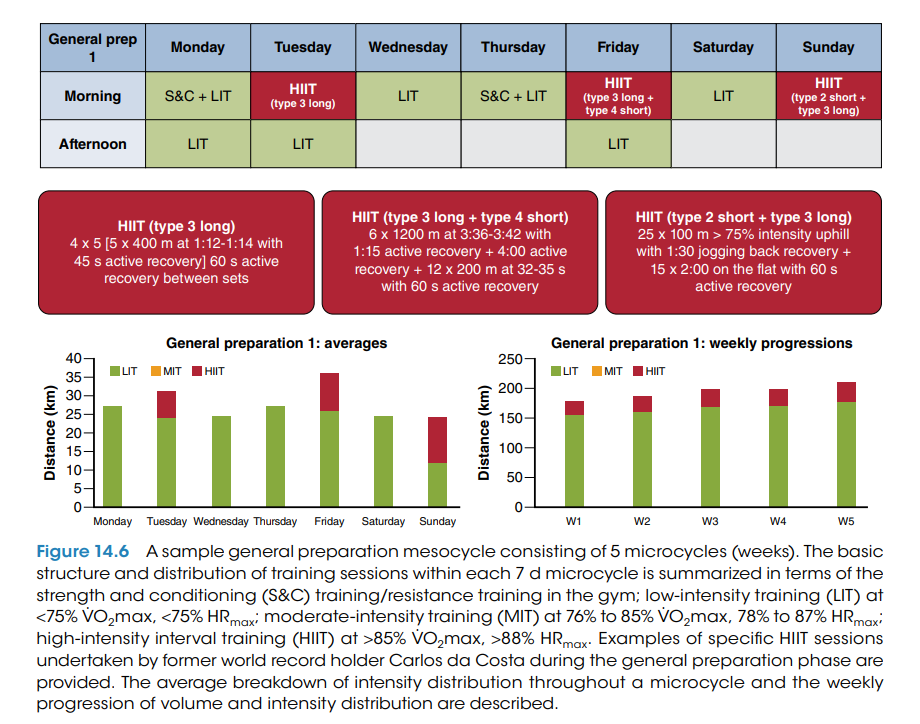 巴西跑者 Carlos da Costa在1998年柏林马拉松打破当时全马记录20605,前25周的训练课表结构