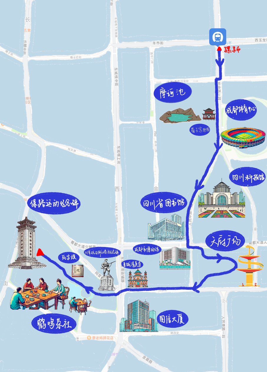 这里是四川的导览系列节目-声游四川。我们的导览不同于普通的导游介绍,而是一场伴听式游览。推荐您亲身来到路线地点,听着我们的导览行走。如果确实无法前往,可查看本期节目配套的图片(点击查看,图片可另存本地),内含地图及实地照片,进行收听。