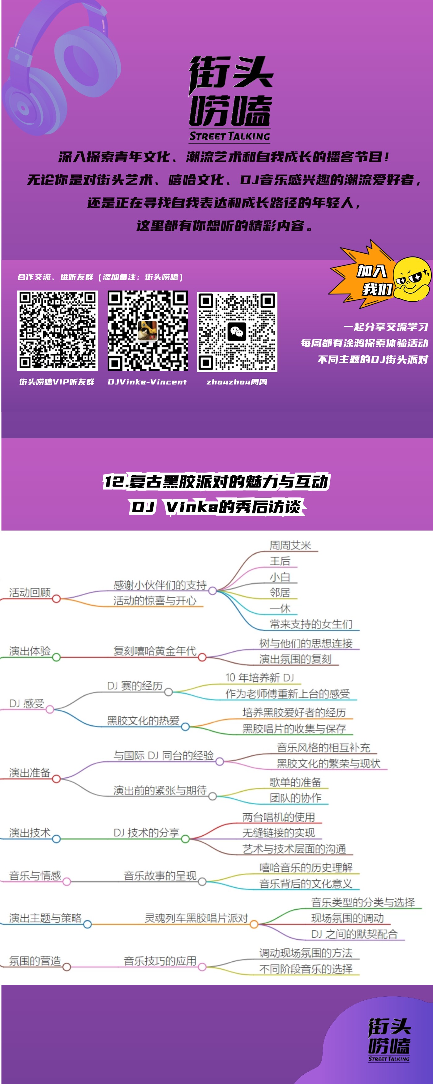 {无论是街头艺术、嘻哈文化、DJ音乐感兴趣的潮流爱好者,或是正在寻找自我表达和成长路径的年轻人【街头唠嗑】就是最懂你的小伙伴!}