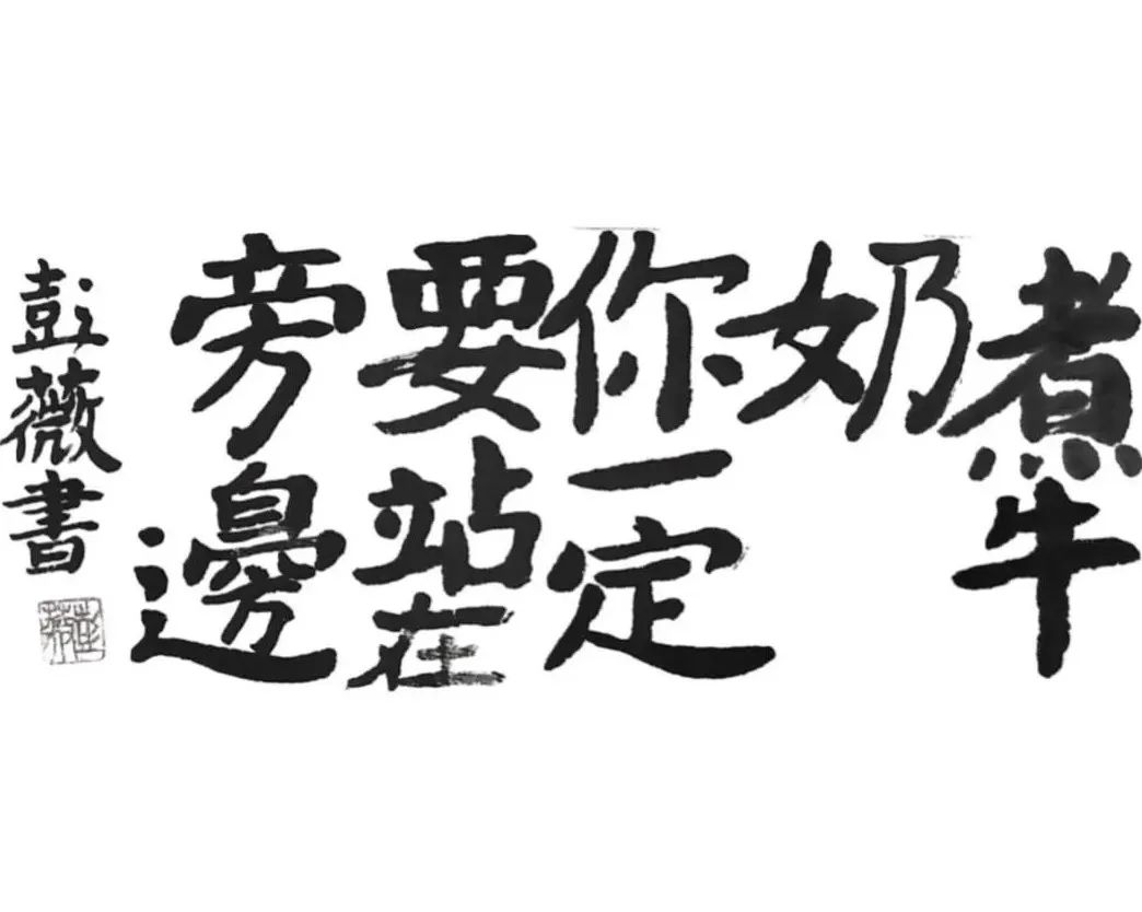 最近一直想在水吧的墙面挂上一句话——「煮牛奶你一定要站在旁边」,是陈丹青在《木心遗稿·引》里整理出的木心写下的一些似俳句而非俳句的句子,陈丹青给这句话的批注只有「哈—哈—哈—哈—哈—哈—哈」。前几天看袁弘拜访艺术家彭薇的视频,袁弘曾经向彭薇求过一幅字,也是这句话,摆在他的面包店里,每逢店庆的时候拿出来,客人们都很喜欢,特别是在疫情期间,这句话蒸腾出的平淡生活气,熨烫被现实挤压出褶皱的心。