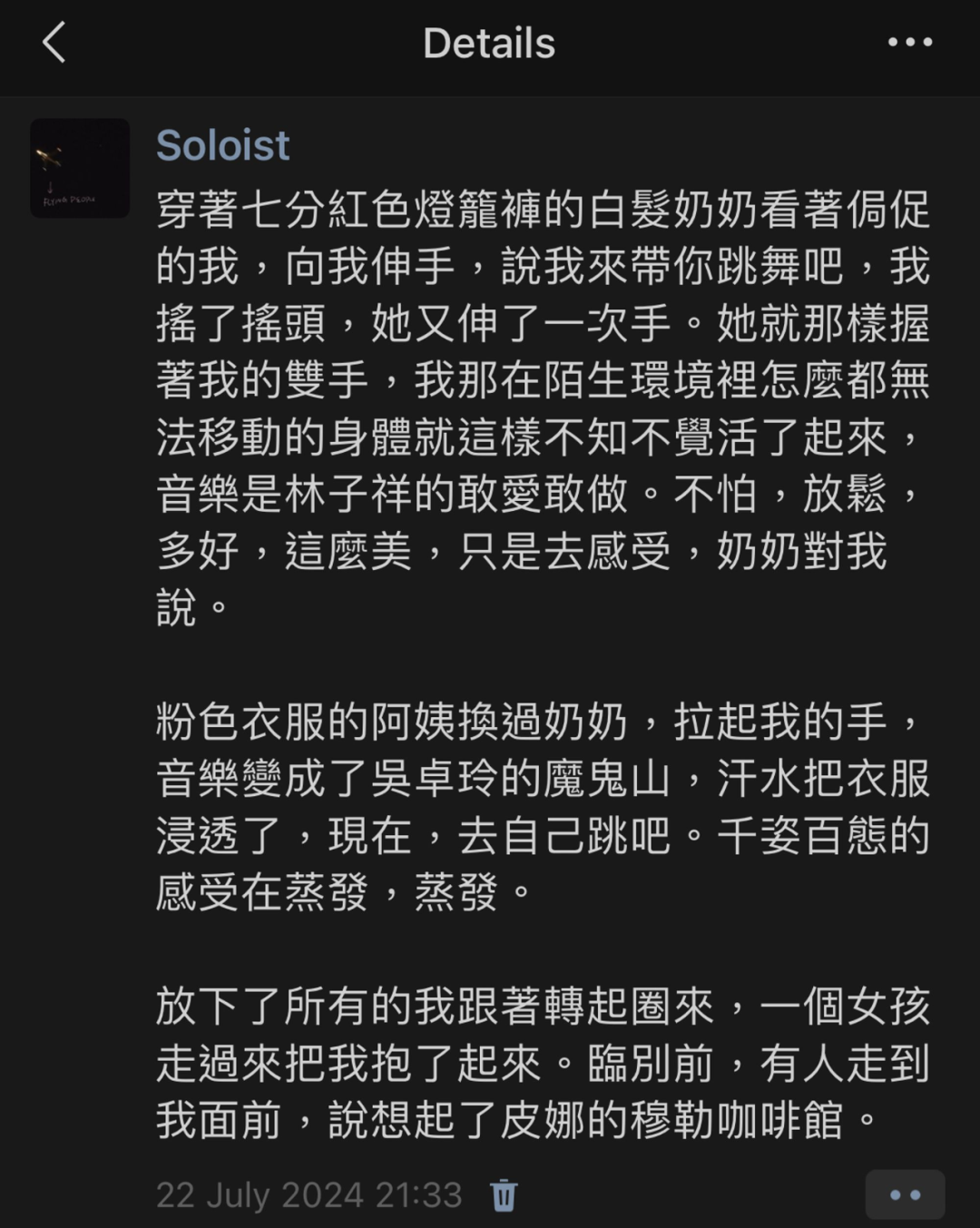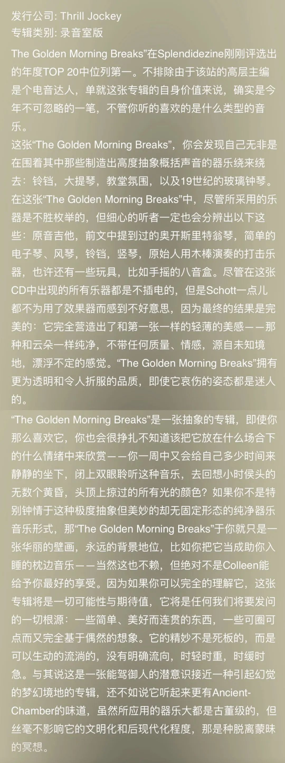 一位朋友无意中在我们共同所在的群聊中分享了这张专辑,并形容「简介写得好好」,于是有那么几天,它成了我的耳边风。除了再次重复一遍那句「简介写得好好」,我想我也没有更多的话可以说了 :)