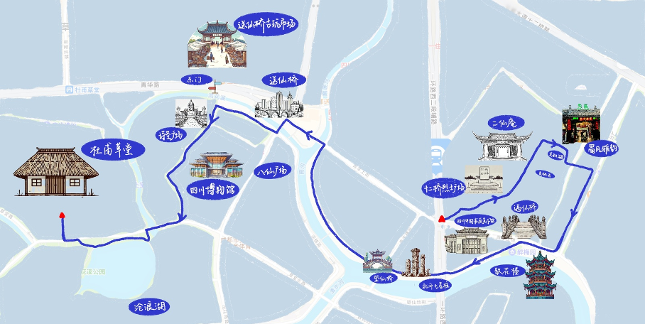 大家好,本期《声游四川》,我们和颖梅老师,从青羊宫出发,一起做神仙!我们会经过遇仙桥,送仙桥,望仙桥,感受崇尚自然的道家文化。我们行经支矶湖、百花潭公园、浣花溪公园,是一条充满花香浓阴的citywalk道路。