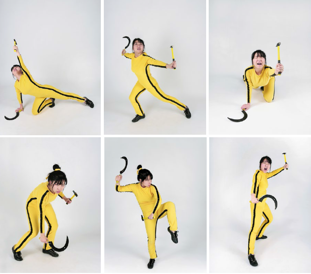 姚清妹身着李小龙(Bruce Lee)在电影《死亡游戏》里的经典黄底黑条服,手持镰刀锤子起舞。她用声乐的方式演绎李小龙电影中惯用的打斗叫喊声,而钢琴师则以忧愁浪漫的方式阐释了电影配乐。