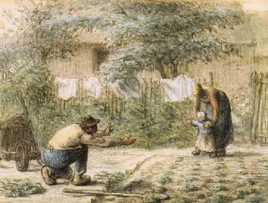 米勒 Jean-François Millet ,《蹒跚学步》First Steps,1858年