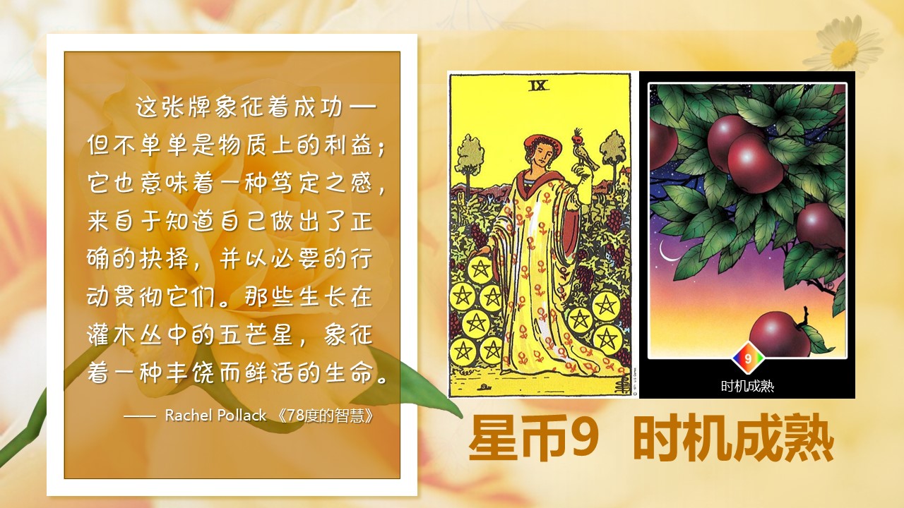 【牌面】星币9(韦特塔罗牌)、时机成熟(奥修禅卡)