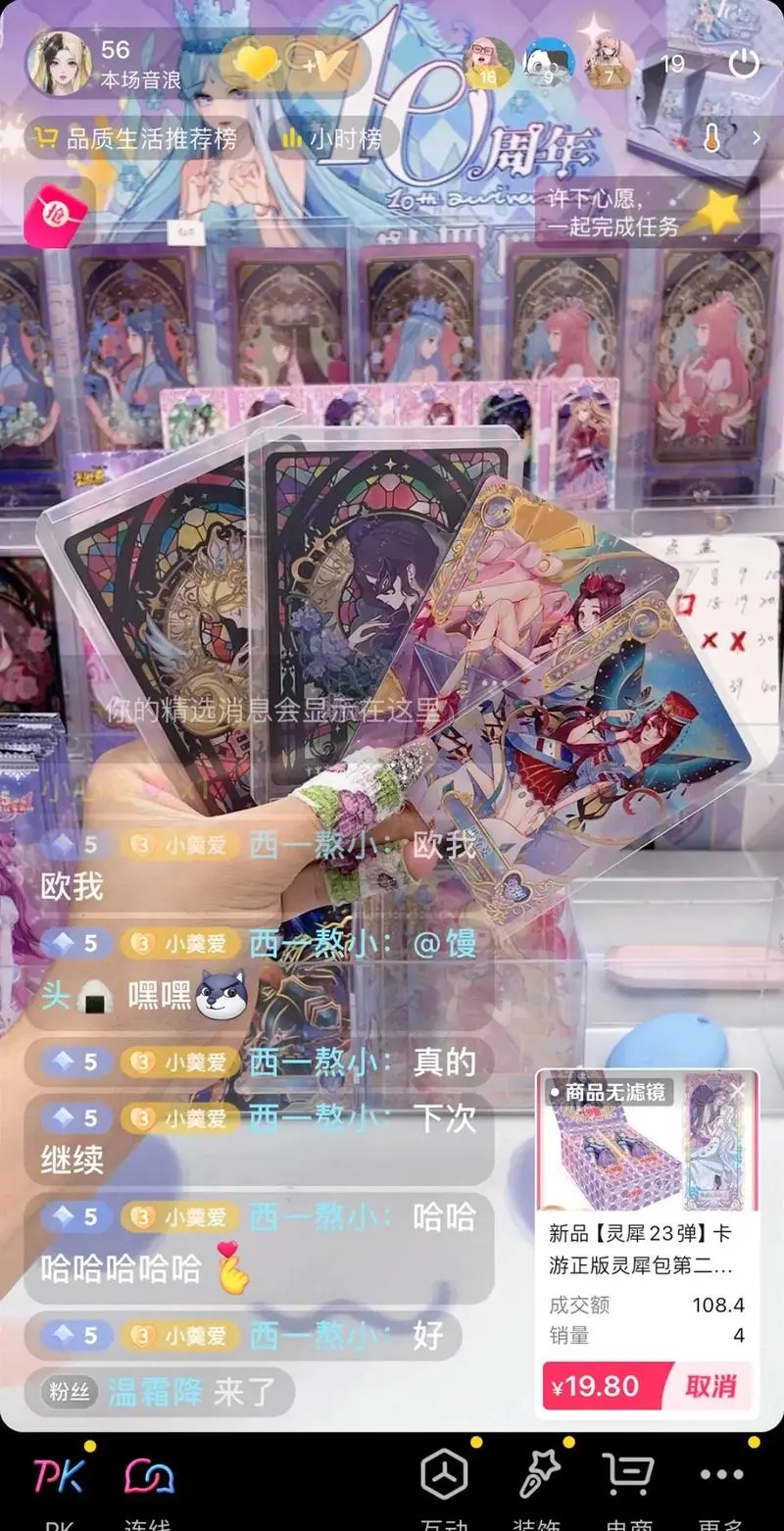 楠楠说:“大家一起拆卡很治愈,有人收到不喜欢的卡片可以当场问有没有人愿意交换,在互动区达成一致后就可以私信客服。我选的也是自己真心喜欢的品,有时候遇到‘老板’抬箱(买一整箱),一次性能拆上百包,因为拆卡过程本身很有趣,我们的直播基本上不需要投流。”