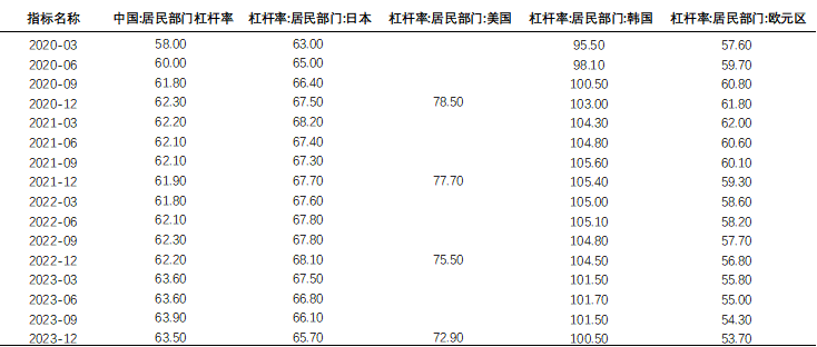 和自己比较完,和境外主要经济体比较,我们的居民杠杆水平大体在什么位置?详见下表。