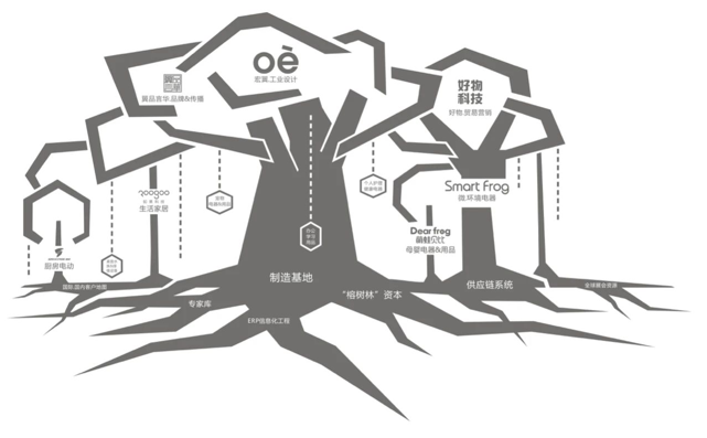 卡蛙科技成立于2013年12月,拥有宏翼设计的强大支撑,是致力于打造中国原创微空间环境类电器的品牌。2015 年底,卡蛙开始自建供应链和制造基地,目前产品线已涵盖香薰加湿、暖冬加热、防虫灭蚊、清凉风扇、创新好玩 5 大系列产品。宏翼创新在打造出以 “卡蛙科技”为 “主干”的榕树林品牌生态系统后,已完全实现了由 “设计服务”向 “自主品牌”的模式转换,将在完善围绕“卡蛙科技” 构建的以研发设计+品牌营销、生产制造、渠道运营独立实体公司紧密合作形成的全链业务基础上,做强做大“生活小家电”。此模式经过实践的验证,卡蛙可将其向其他行业复制,逐步勾连出更大范围的 “榕树林”区。