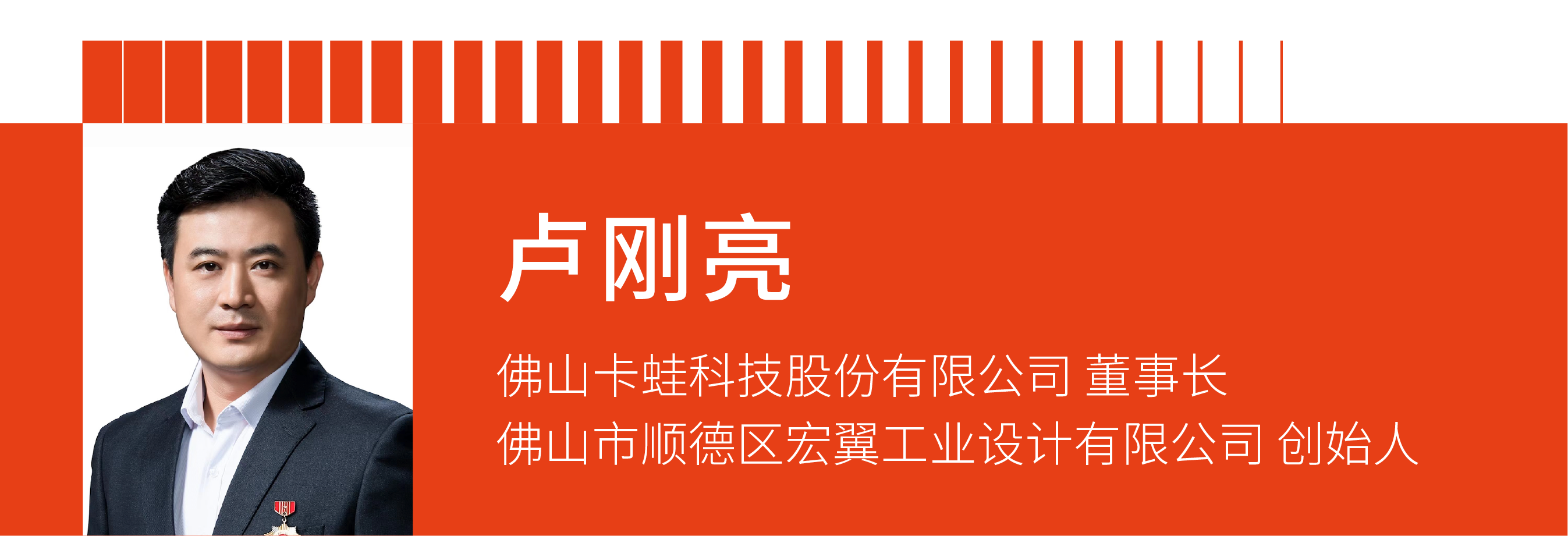 卢刚亮,2005年创立佛山市顺德区宏翼工业设计有限公司,是中国设计业知名设计企业;2013年创立佛山卡蛙科技股份有限公司,探索“设计创新驱动产业创新”的新路径,卡蛙科技案例为行业转型之典型;2021年履任顺德工业设计协会会长,并积极推动大湾区设计行业的繁荣和发展,卢刚亮为顺德承办世界级盛会——“2021第32届世界设计大会”做出了杰出贡献。