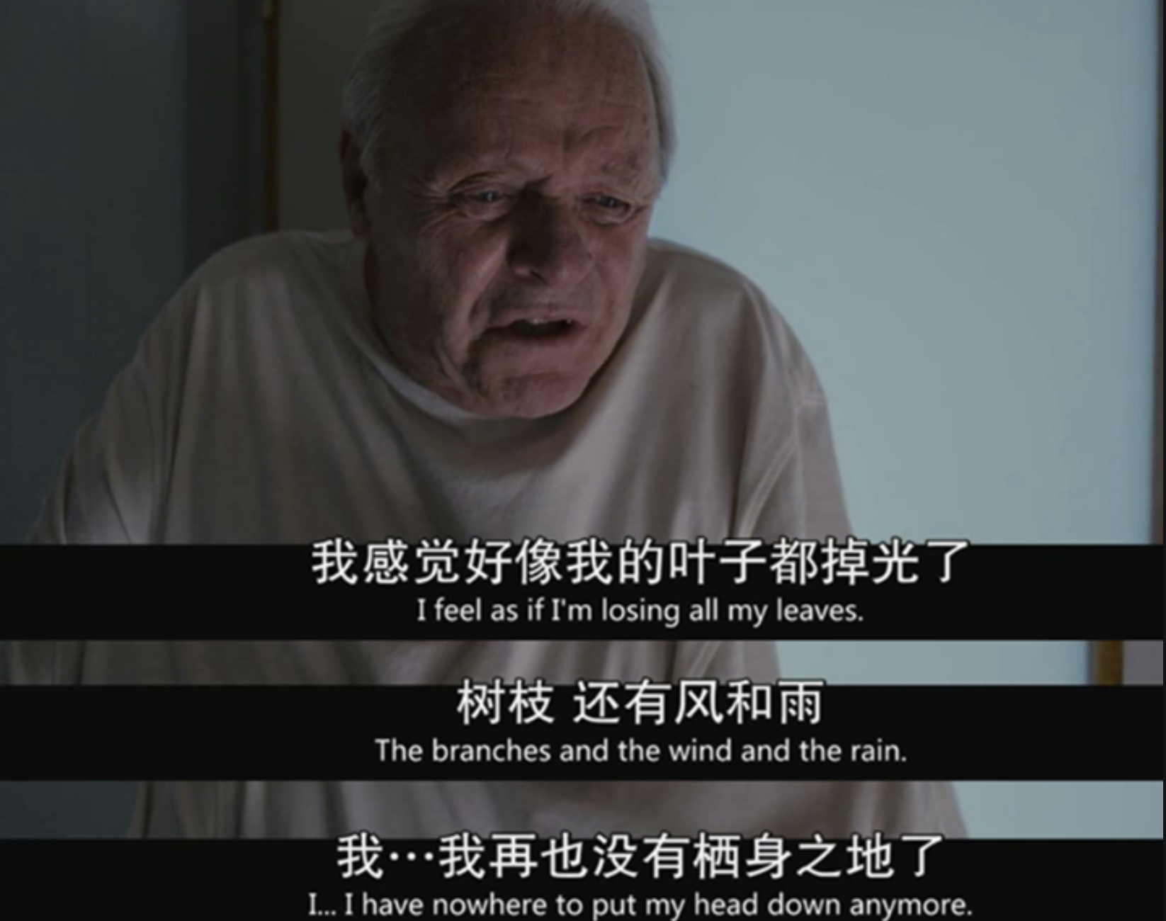 《困在时间里的父亲》剧照,影片以身患阿尔茨海默症的老人安东尼的视角讲述了自己逐渐接受阿尔茨海默症给他带来了思想和现实的变化