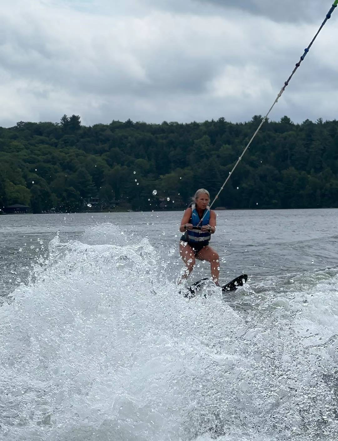 退休的校长向孩子们示范什么叫waterski 她告诉孩子们women can do everything.