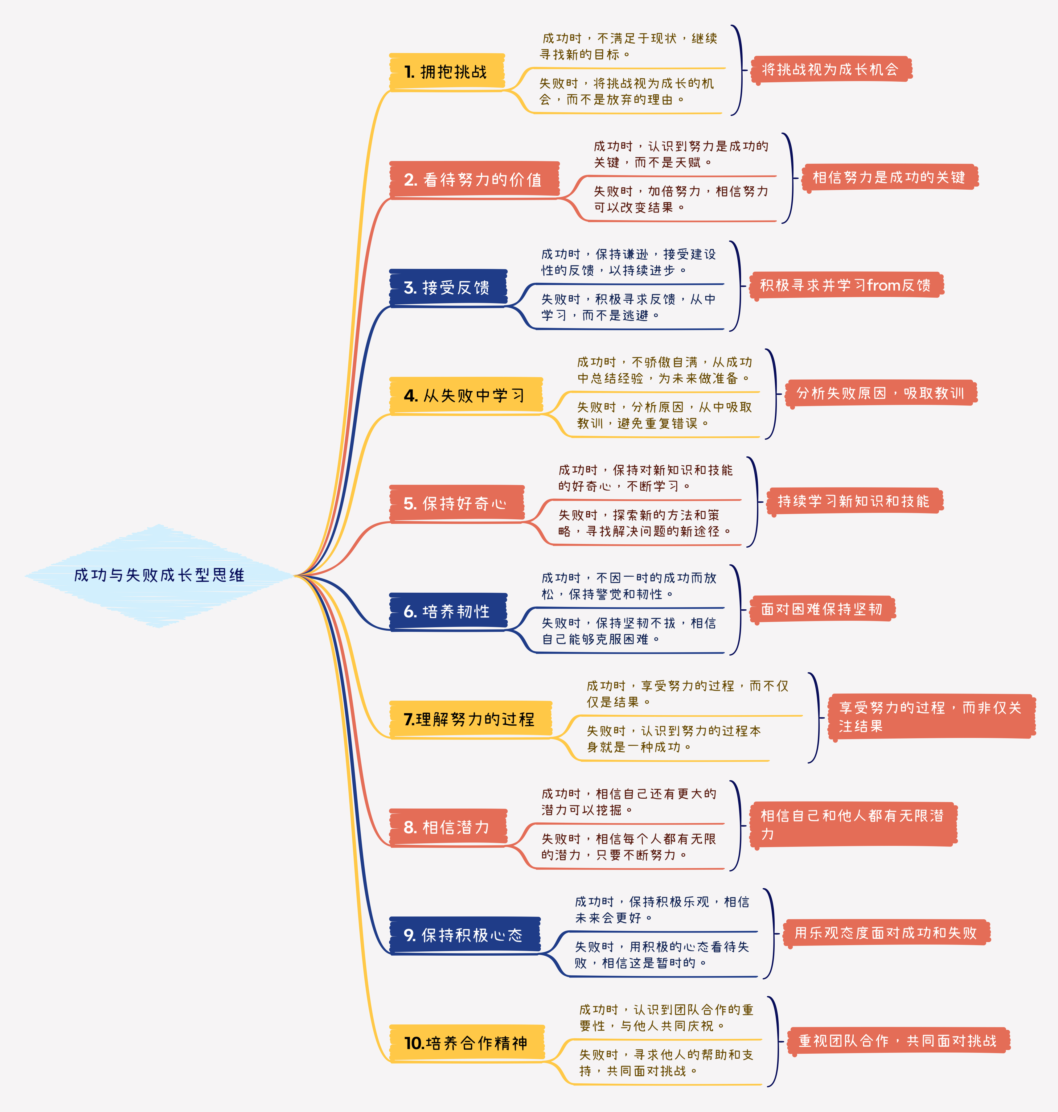 5. 成长型思维的重要性,即看待失败作为成长和学习的机会。