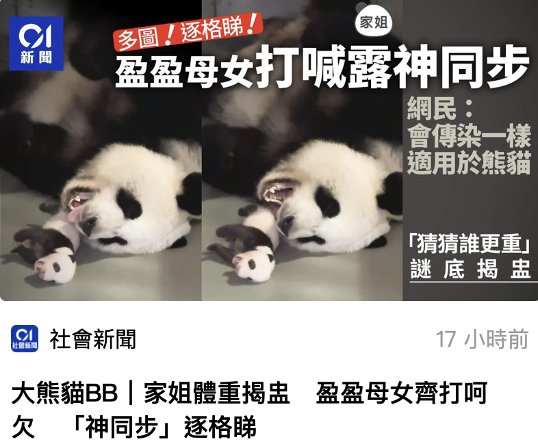 第二条新闻是香港的一件开心事儿,又有两只新的大熊猫从成都搬家到香港啦~ 为了迎接两只大熊猫「安安」和「可可」的到来,香港可谓是诚意满满,全城狂欢,街道、商店都少不了大熊猫的身影。