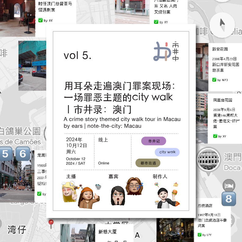 本期节目,我们做了些新的尝试,我们想带着你们的耳朵,和我们来一场澳门的城市罪案主题city walk,带着你们的耳朵,实地探访那些曾经在澳门发生过的罪案故事。希望你们能喜欢,也希望这个主题能给你们对澳门这个城市带来一些不一样的认知。