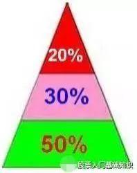 第二种是“三角形仓位管理法”,三角形的特点是底部面积大、顶端面积小,这意味你的本金也要分配成初期仓位大、后期仓位小的特点。我们可以将本金划分成三份,这三份比例为50%,30%和20%,这样共计刚好是满仓。因为分配的比率是由多到少的过程,所以用图形显示的话就类似于三角形。