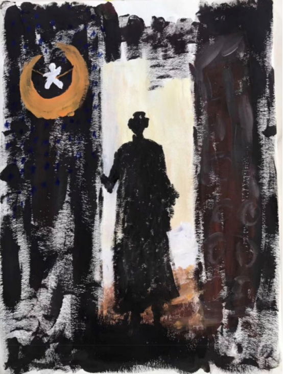 2020年的我们都是主动隔离在屋子里,我们多么渴望爱与自由。今天是复活节,所以创作一幅,我们抬头希望看见的天使之吻,象征着重生与希望。