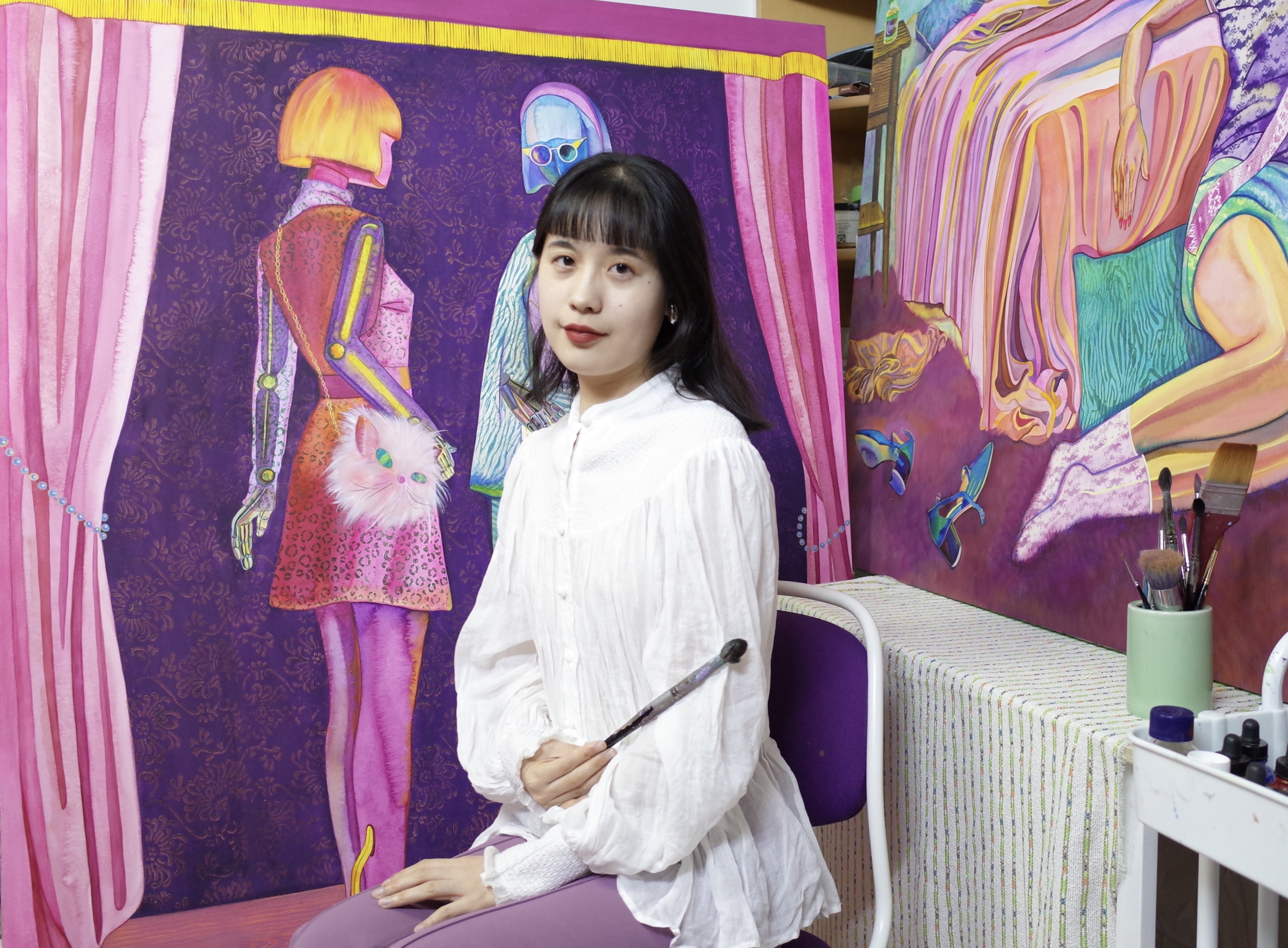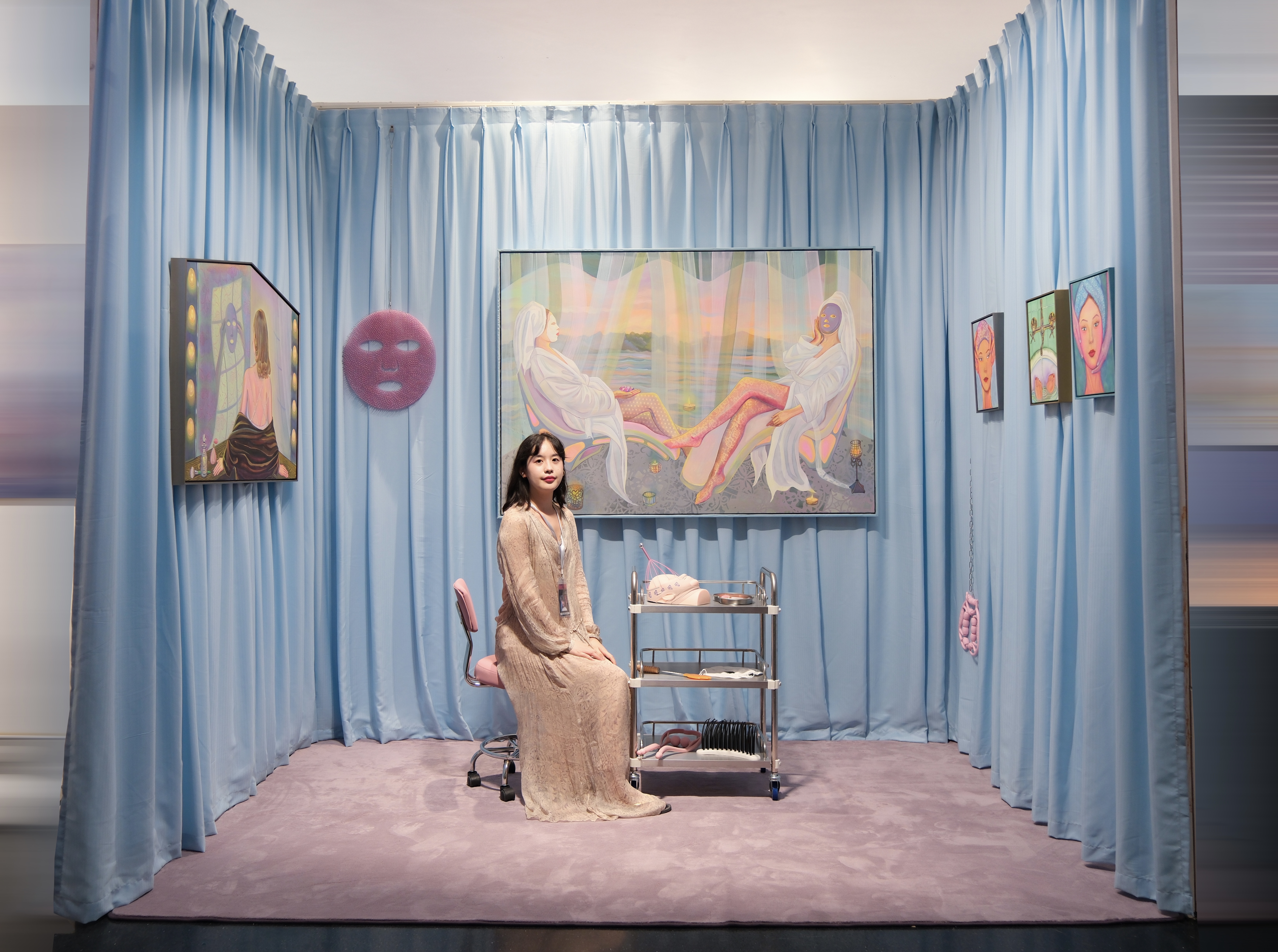 从她童年时的艺术启蒙,到川美和央美的求学经历,曹金岩的成长故事充满了勇气与突破。她将在节目中分享背后的创作心得,尤其是她最喜欢的展览作品《淑女屋》——一件融合了女性视角和个人收藏癖的作品,背后隐藏着哪些惊喜?而关于作品《瞬间》和《残酷月光》,她如何通过生活中的点滴触发灵感,又如何在画布上呈现这些瞬间性的情感波动?