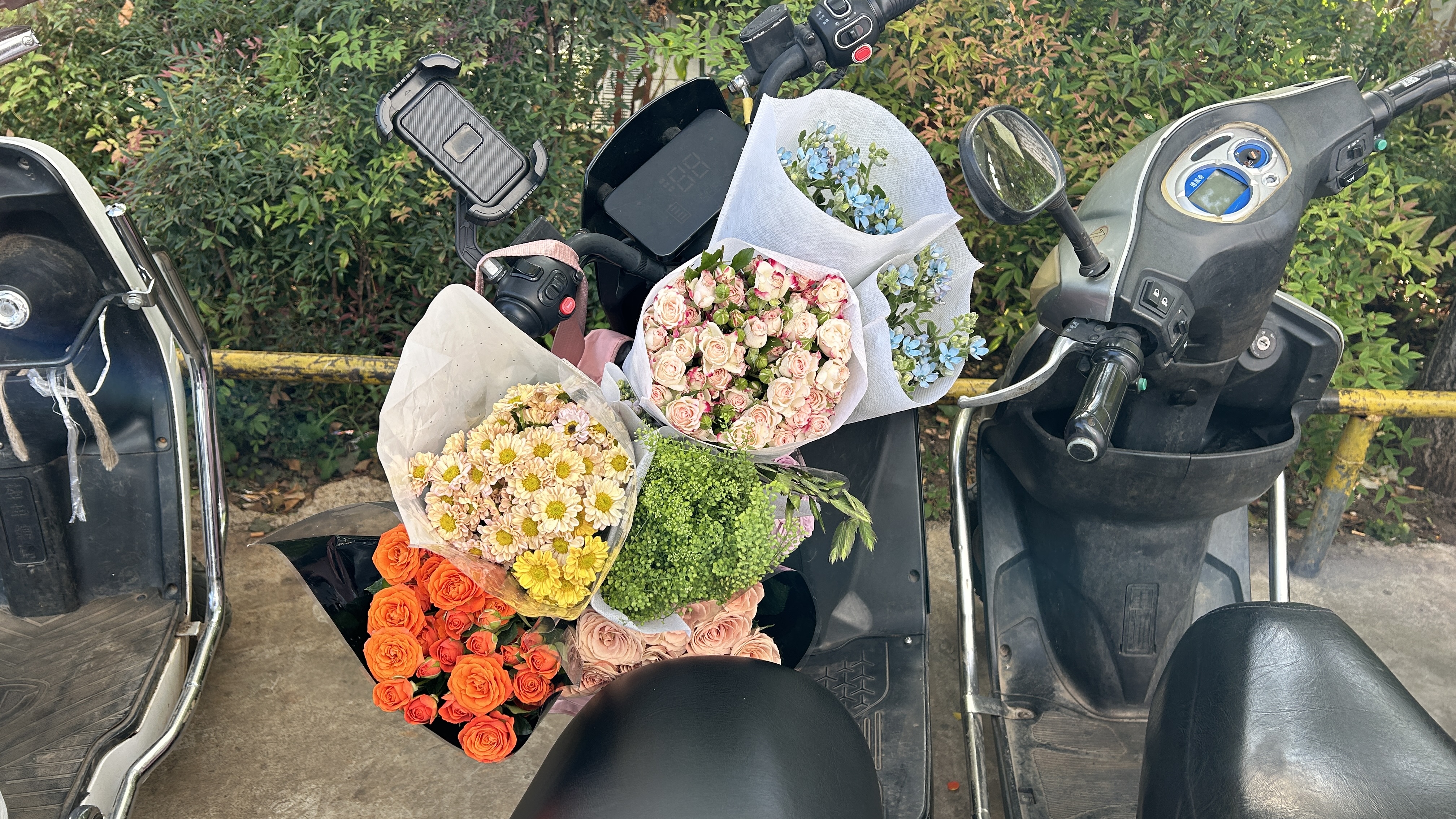 前两天贪便宜买的花和我的小车。(看起来没有那么不新鲜,对吧?)