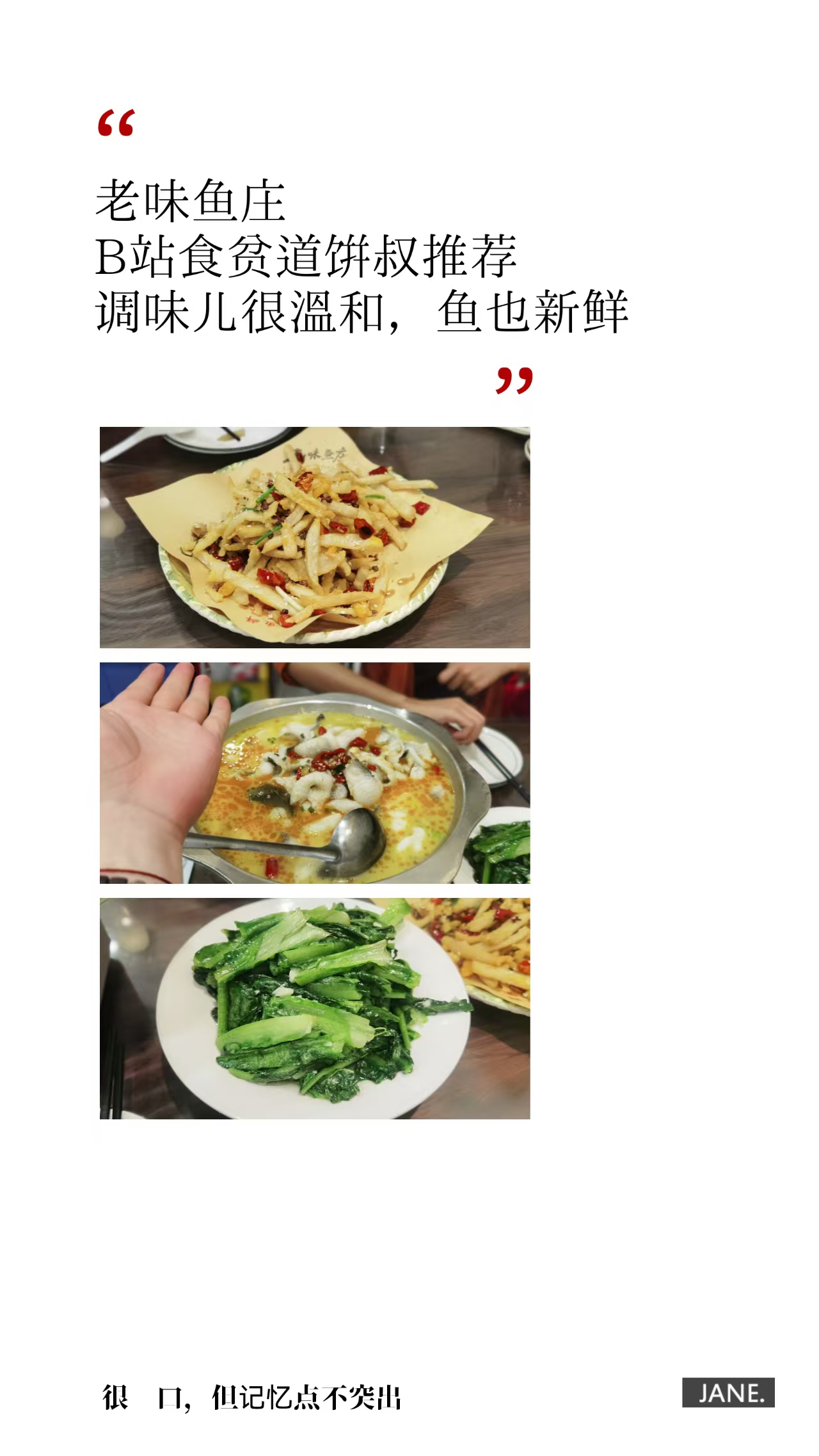 8、老味鱼庄:B站食贫道饼叔推荐,酸萝卜鱼、藕条、时蔬都不错
