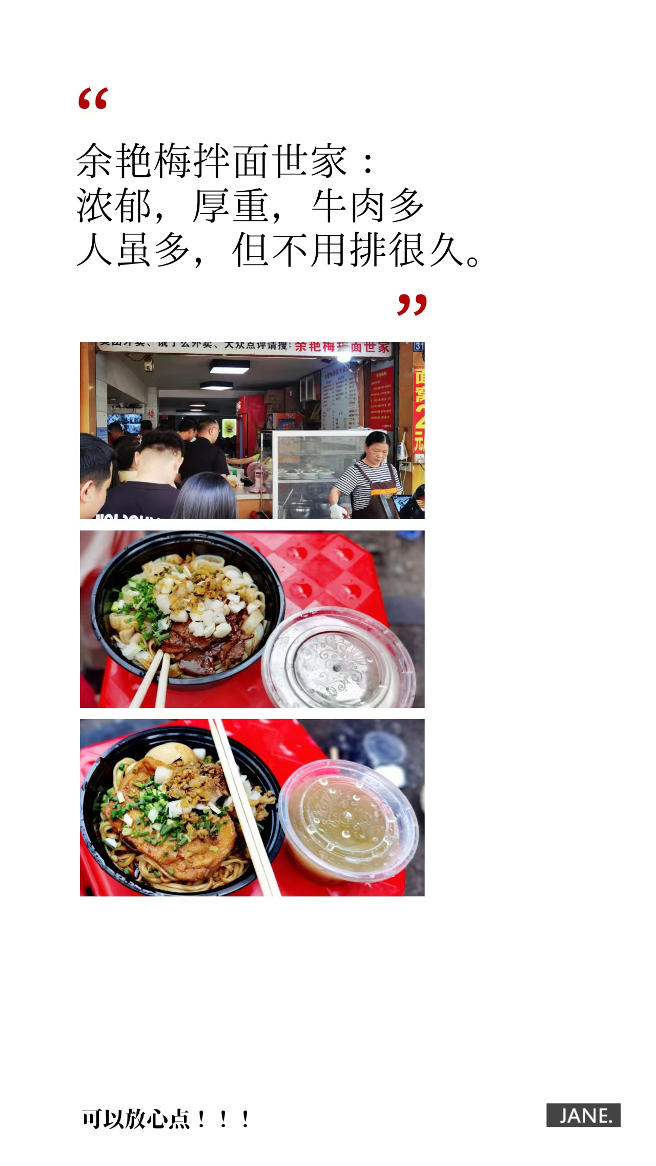 1、余艳梅拌面:牛肉拌面+拌粉,绿豆汤+蛋酒