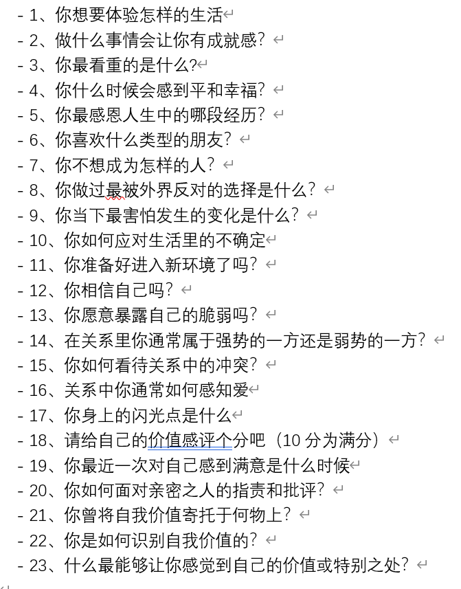 以下是我们21天疗愈打卡里涉及的23个问题,如果你们感兴趣,不如也问问自己吧