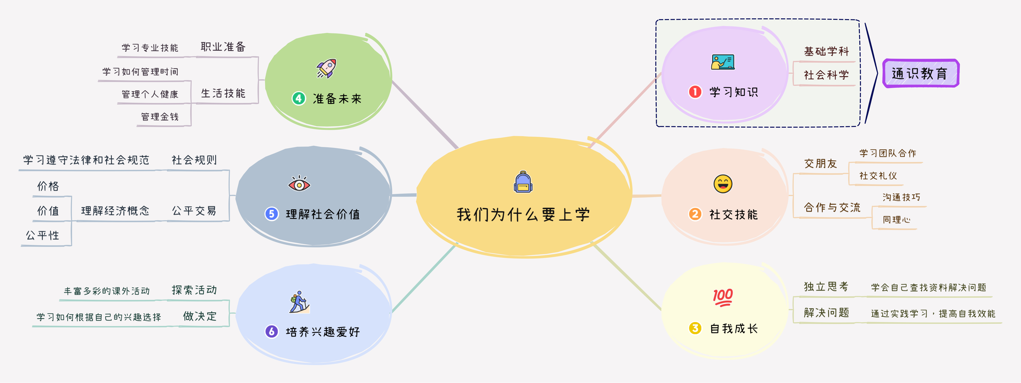 讨论上学的好处,如学习新知识、结交新朋友和发现自己的兴趣。