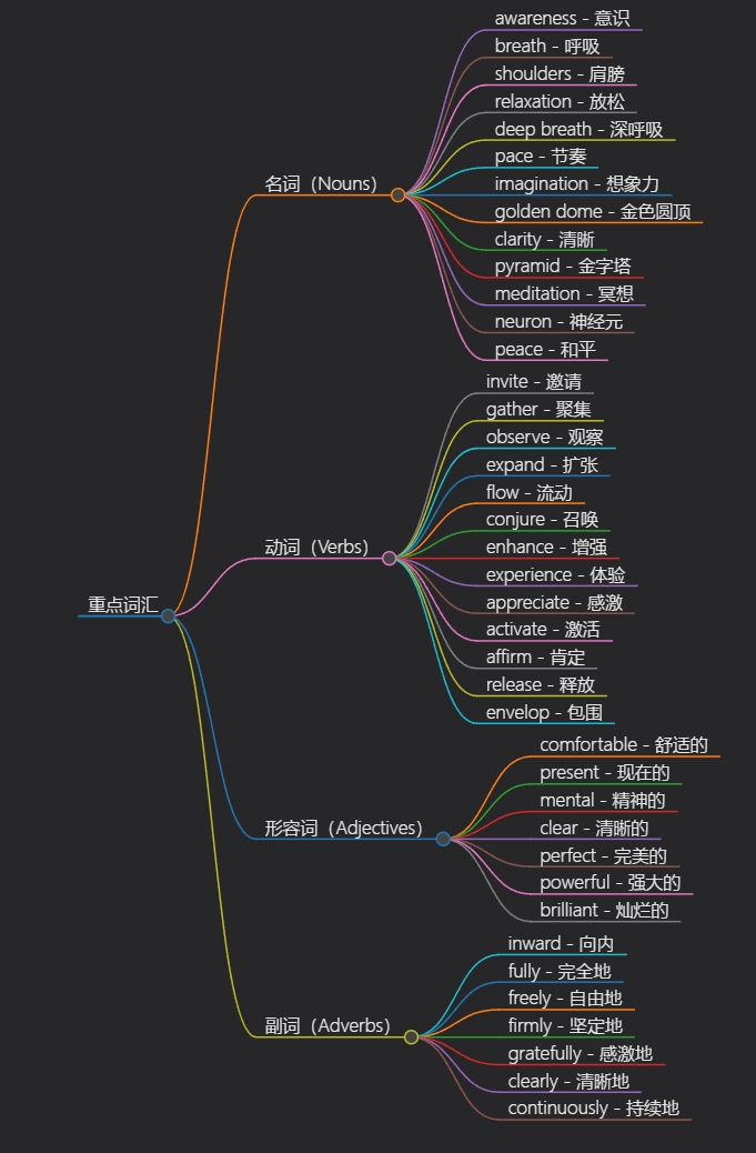 - 进一步放松肌肉,感受自己沉浸在这种能量中。