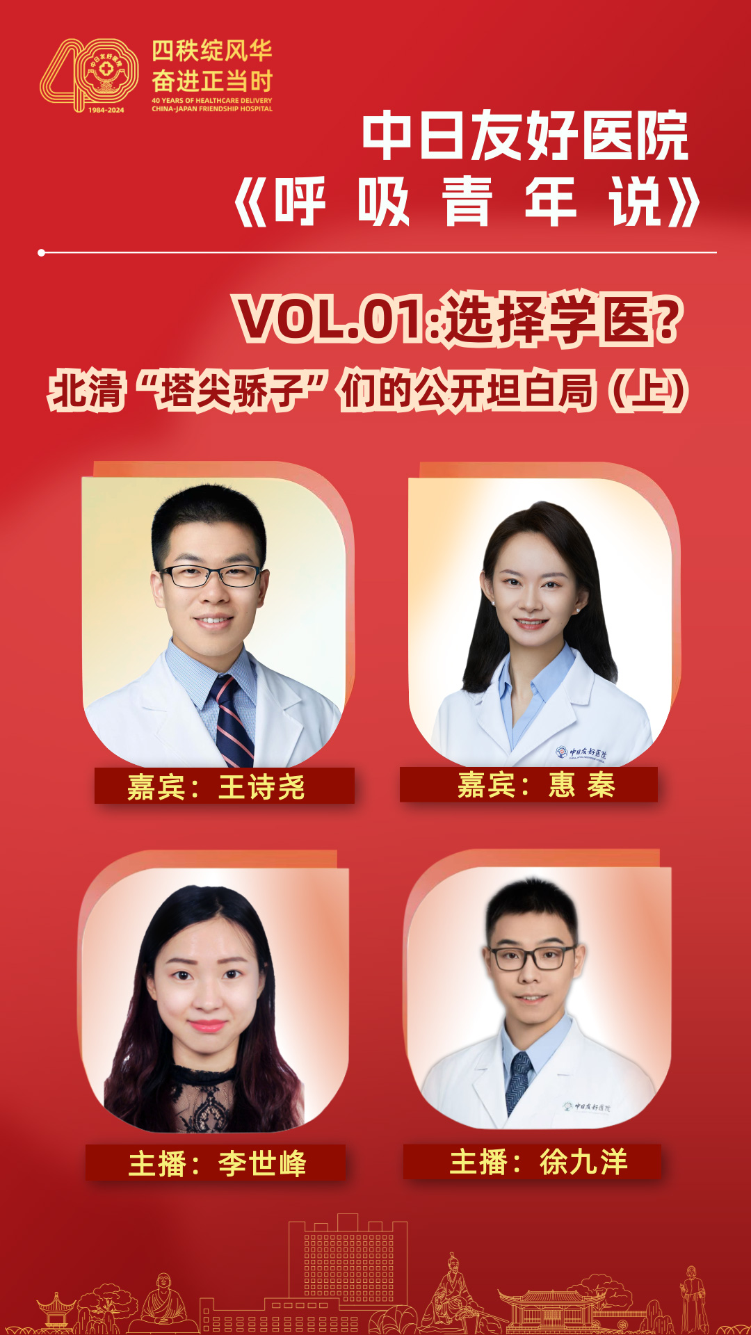 我们是一群来自中日友好医院&国家呼吸医学中心青年委员会的医务工作者。中日友好医院建院40周年的特殊时间节点,勾起了我们的学医初心。