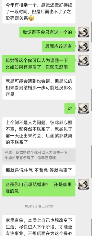 高阶:能看到是【相亲认识的】,而且【不止有一段】