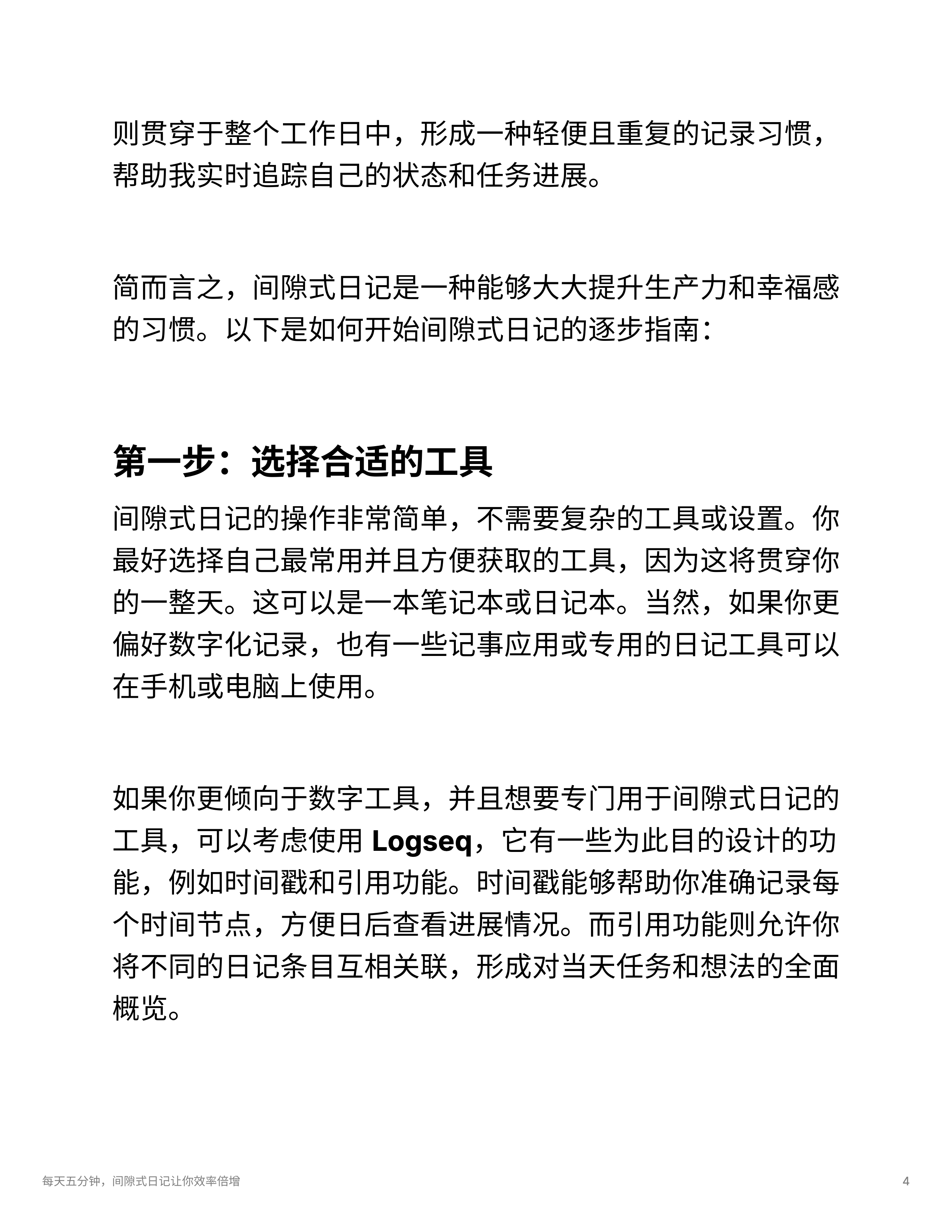 - 结合多种功能:间隙式日记法结合了日记、笔记、任务管理和时间跟踪的元素。
