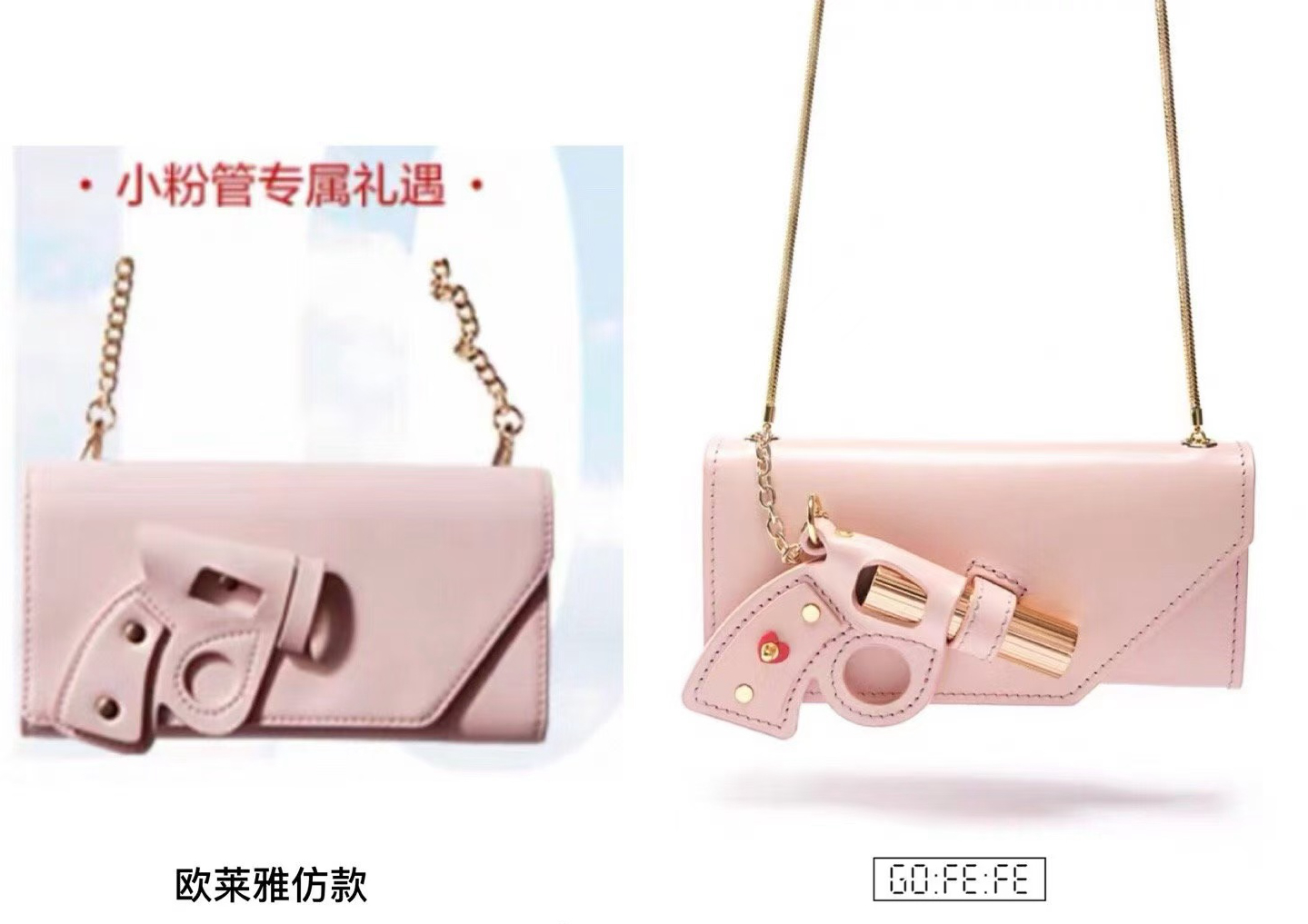 疑似被抄袭的口红手枪包对比图