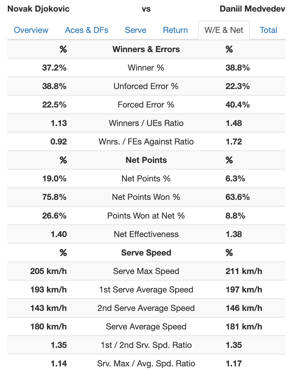 近几年德约科维奇发球上网的能力得到了史诗级加强。这主要来源于2021年为克服主要对手梅德韦杰夫的势头这个目的所带来的技术进步。2021年,梅德韦杰夫的底线相持技术,使得德约科维奇以及其他一众底线型选手难以招架。在美网决赛中,德约科维奇因为年底体能下降、全满贯的压力以及备战梅德韦杰夫的不足,导致三个6-4惨败于梅德韦杰夫。随后的巴黎大师赛,德约科维奇超过四十次使用发球上网击败了梅德韦杰夫。