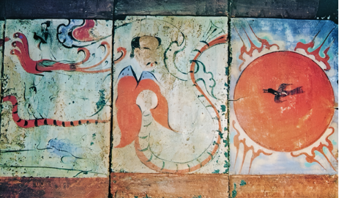升仙壁画局部·卜千秋夫妇·伏羲·太阳